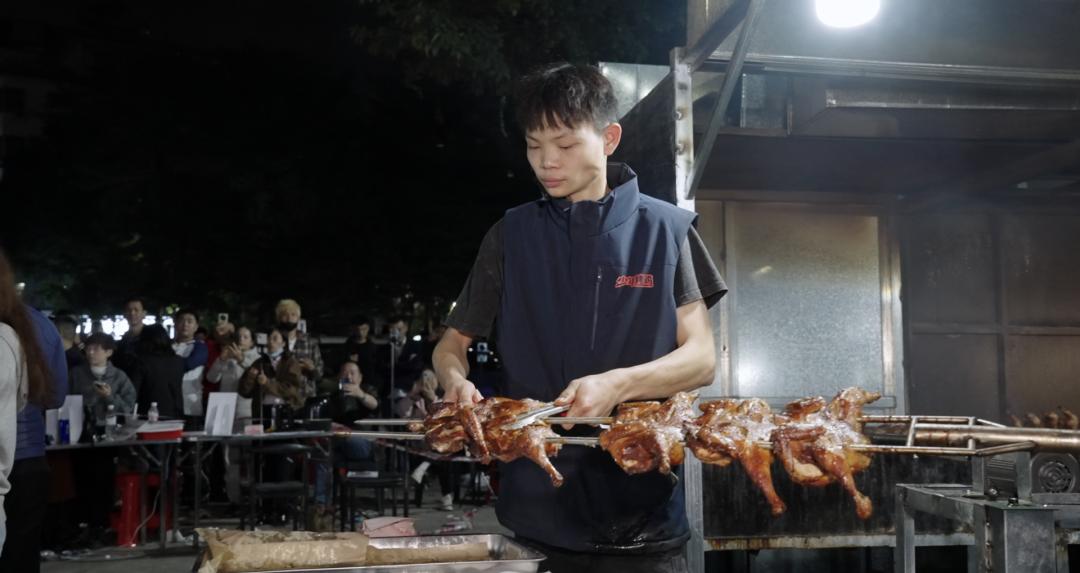一个探店博主,好像叫“dd今天吃啥”,是她先发现了小陈,拍了视频,然后体德校长李维刚,千万粉丝的大网红,也来凑热闹,这下彻底火了,一天一个样,小陈直接爆红,少年烤鸡,成了深圳一景,排队的人,那叫一个多,有人专门坐飞机过来吃,太夸张了。