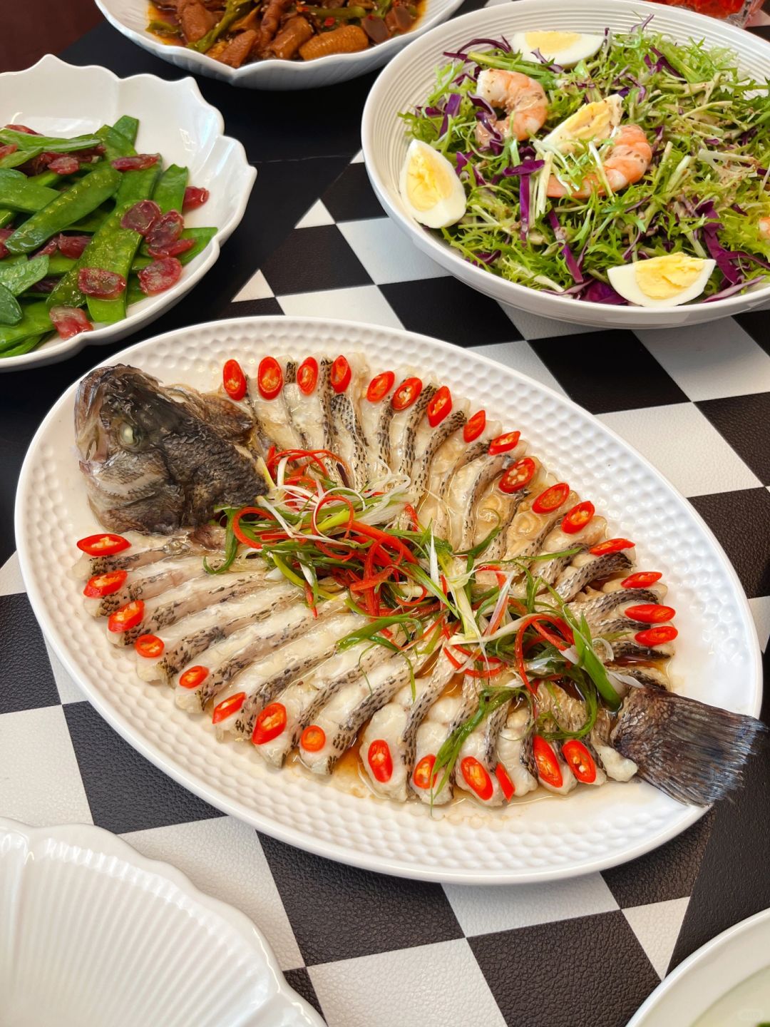 [福R]展翅高飞:知味酱鸭[福R]五谷丰登:锦绣八宝饭[福R]四季常青:荷兰豆炒腊肠[福R]花开富贵:白灼虾[福R]团团圆圆:红烧狮子头[福R]年年有鱼:清蒸孔雀开屏鲈鱼[福R]甜甜蜜蜜:黄桃罐头[福R]鸡蛋虾仁蔬菜沙拉[福R]椒麻大杂烩