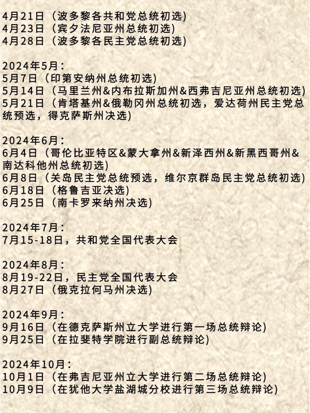 金融知识一学就会(fei) 本期给大家科普——2024年美国总统大选重要时间节点