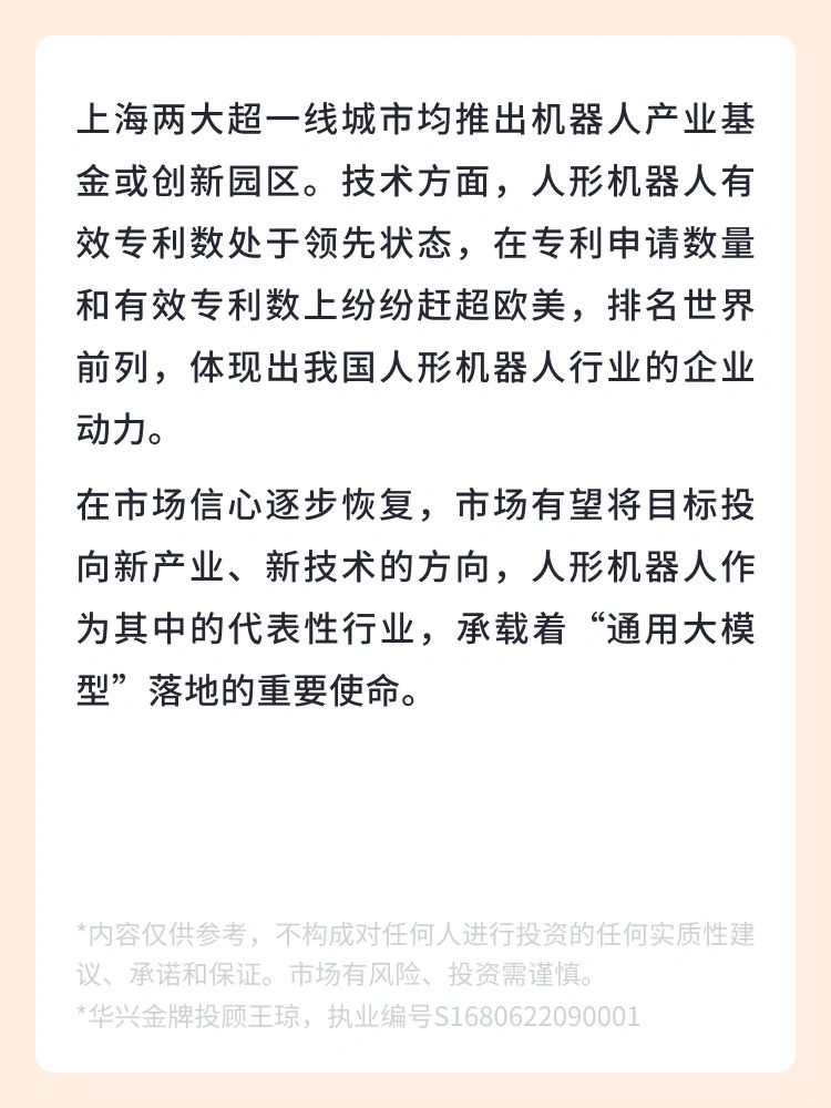 👉 在市场信心逐步恢复,市场有望将目标投向新产业、新技术的方向,人形机器人作为其中的代表性行业,承载着“通用大模型”落地的重要使命。