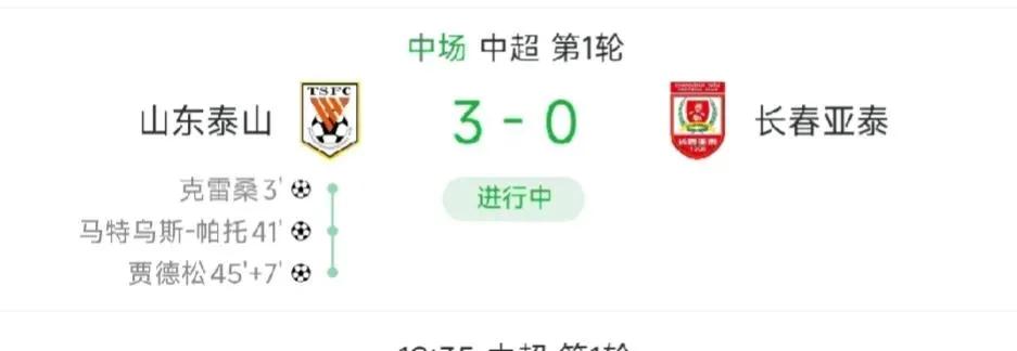 半场3:0!徐江被打脸!上半场结束,山东泰山队3:0长春亚泰,克雷桑踢进本赛季中