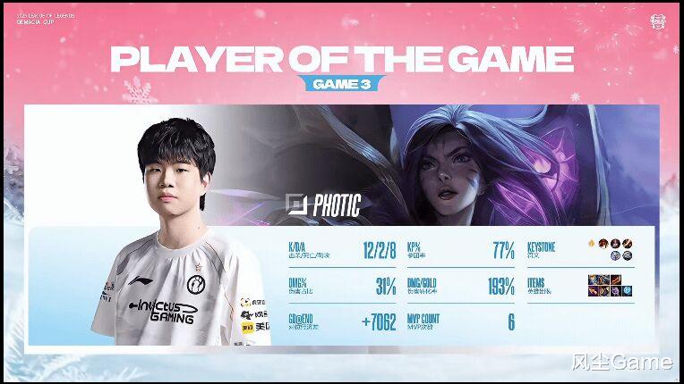 可能是老将带新人的缘故吧,现在的IG,沟通、配合都有点东西,不过中路救火的小将,整场都不是特别亮眼,对线经常被压刀,感觉有待提升,不过他也只是打一打德杯,第一赛段Rookie是要回来的,如果能再精进一下,IG明年的战力至少是LPL前六,冲一冲前四,也不是没有可能。
