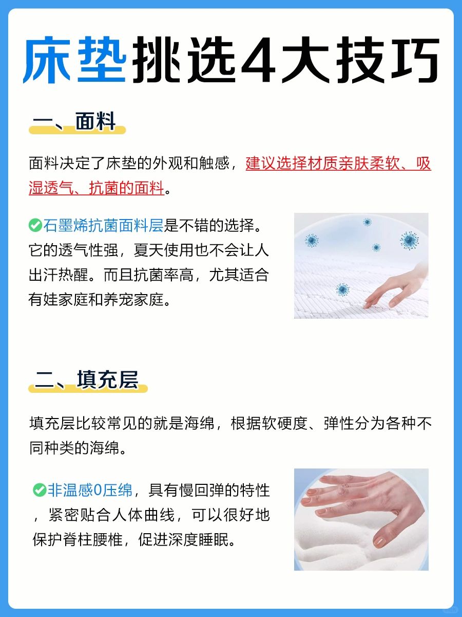 ✅石墨烯抗菌面料层是不错的选择。它的透气性强,夏天使用也不会让人出汗热醒。而且抗菌率高,尤其适合有娃家庭和养宠家庭。