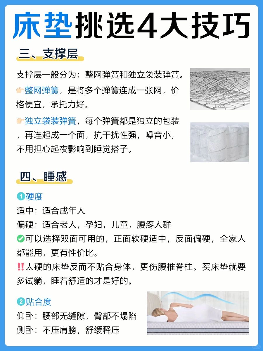 ‼️太硬的床垫反而不贴合身体,更伤腰椎脊柱。买床垫就要多试躺,睡着舒适的才是好的。