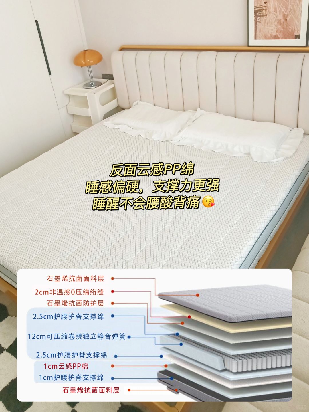 👉🏻反面是云感PP绵,睡感会偏硬一些,支撑力也会强一点,☑️老人、孕妇、儿童和腰疼人群更适合睡这一面哦~