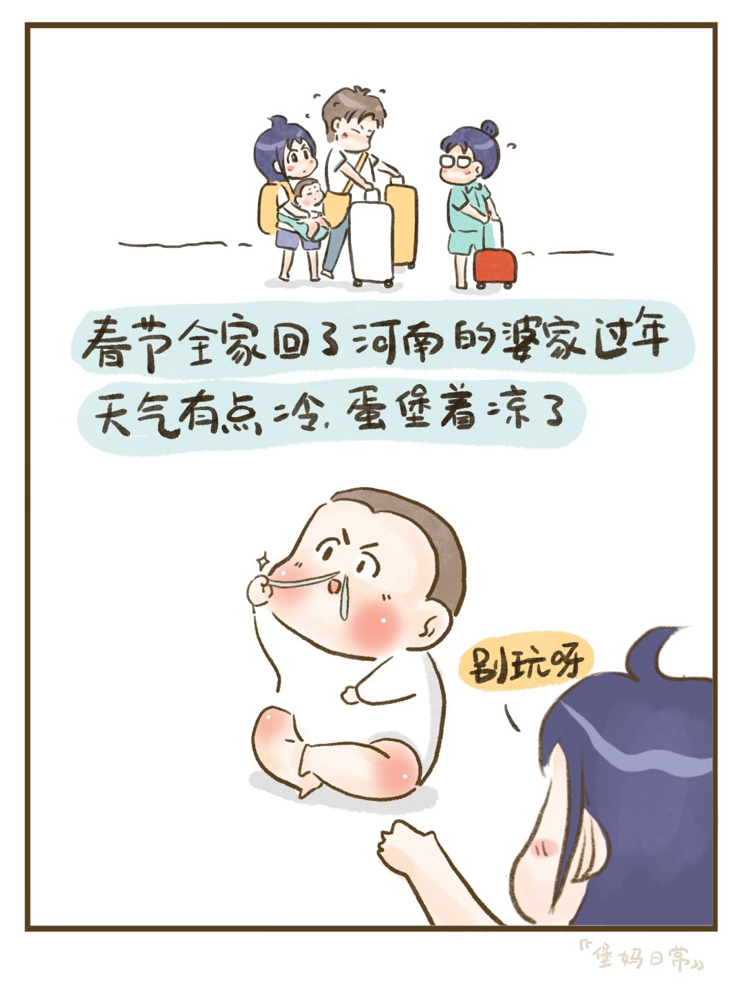 春节期间我们回了远在河南的蛋堡奶奶家,零下的温度,屋子里却没有暖气,全家都相继感冒了,大人感冒倒没什么,辛苦一点忍忍就过去了,但这是蛋堡断奶后第一次生病[哭惹R][哭惹R]