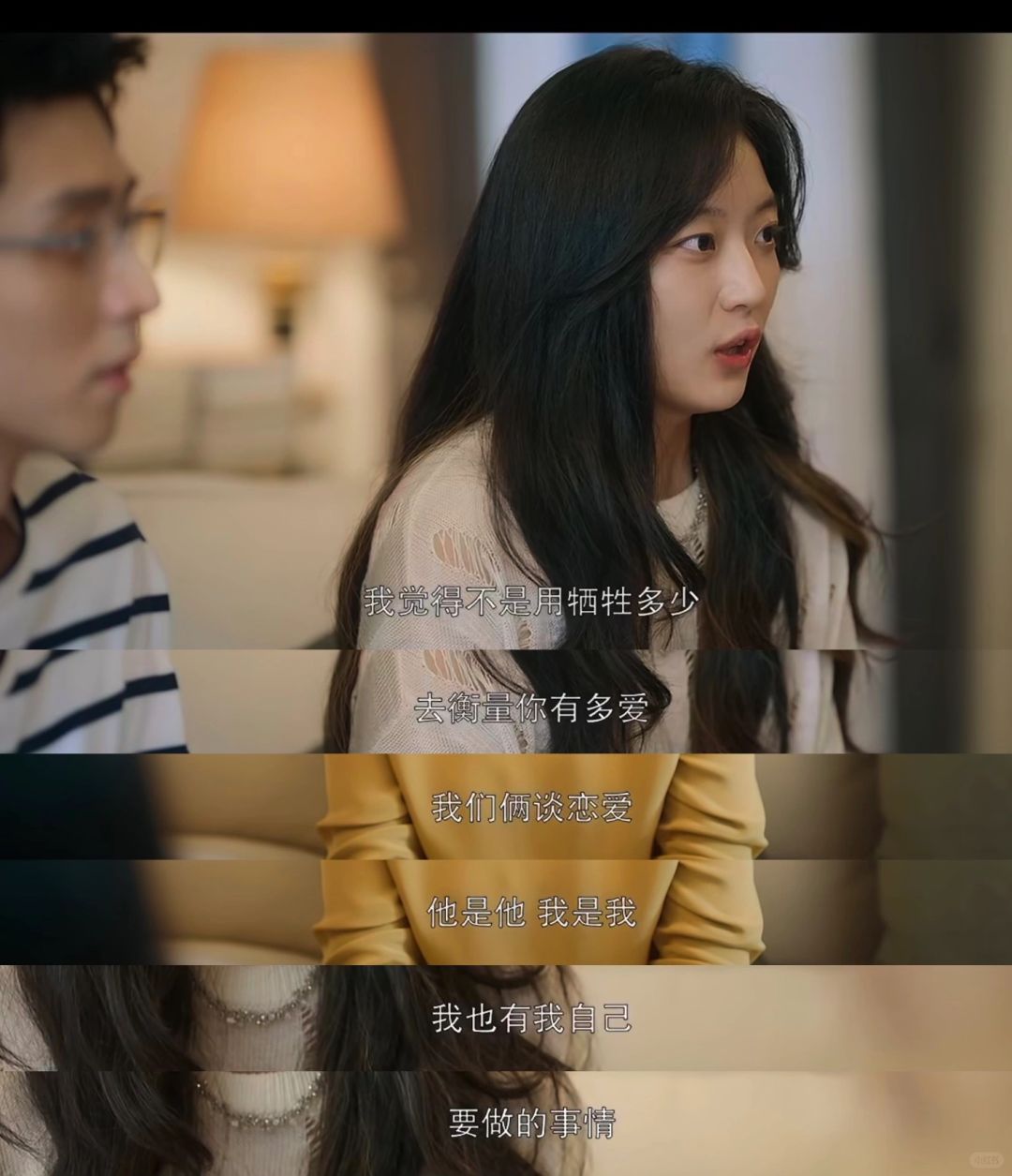 我觉得不是用牺牲多少去衡量你有多爱。他是他我是我,我也有自己要做的事情。让我牺牲不可能!