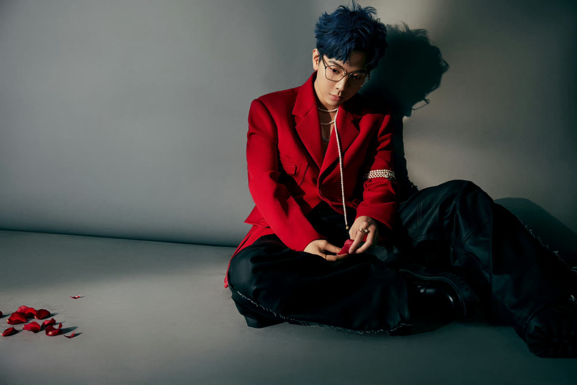 #胡夏珍珠臂环##胡夏的珍珠项链好长# 好适合穿红色!蓝发红西装搭配长长的珍珠项
