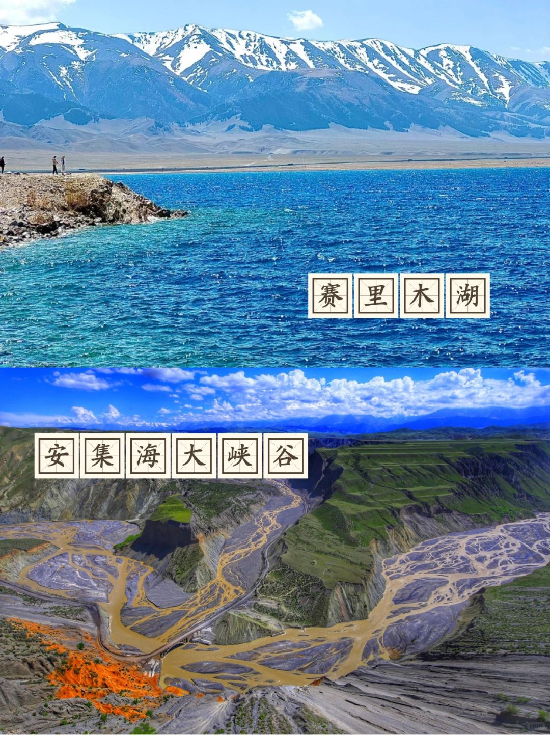 🌈特色玩法:春日限定粉色花海、百里丹霞风貌、独属于赛里木湖的蓝、沙漠落日、“摩洛哥风格”麻扎村