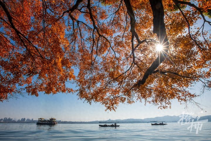 杭州一年四季中,只有在秋冬时节,叶子才可能打败花儿,成为绝对的主角。银杏、无患子、悬铃木、乌桕、鸡爪槭,斑斓多姿的秋色叶这样铺天盖地蔓延开来,尤其是在阳光底下,整座城市都变得五彩缤纷。