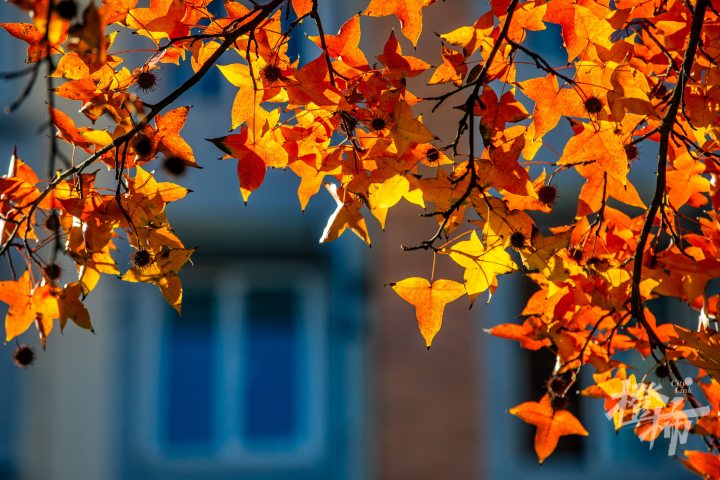 这段时间阳光持续在线,加上昼夜温差,鸡爪槭有了大把时间展现更多彩的一面——往年叶子渐变时间很短,一下子就会变红,而今年,在明黄、橙黄的过渡阶段停留了更长时间,让很多摄影爱好者拍到了很少见到的丰富颜色。