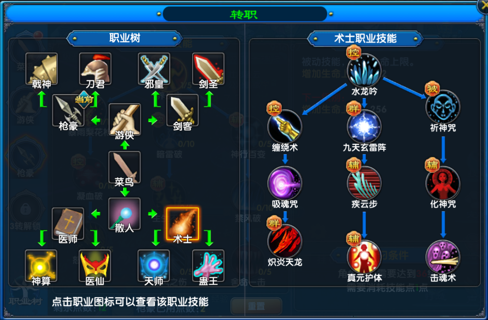 1.前置准备:先将角色等级升至30级,升级优先做武林之路任务拿经验和道具,搭配每日历练、除暴安良等任务提速;且一转需选定职业,游侠对应二转枪豪、剑客,散人对应二转术士、医师。达到等级后找七侠镇的对应职业NPC接二转任务,完成简单的打怪或对话流程即可转职成功。