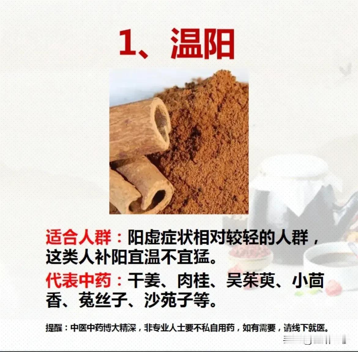 四季温阳壮阳通阳,怎么补阳更合适? 你是否一年四季都很怕冷?如果你常常手脚冰凉,面色苍白,容易疲劳,那么你可能需要关注一下自己的阳气是否充足。 阳气在中医中是一个重要的概念,它代表着人体内的生命力和温暖力量。阳气充足时,人体会感到温暖、有活力;而阳气不足则可能导致身体出现各种不适症状。 在我们的生活中,温阳、壮阳、通阳、升阳、回阳等都是常见的补阳方法,那么怎么补阳更合适呢? 首先,我们要了解不同的人适合不同的补阳方法。对于阳虚症状相对较轻的人群,温阳是更好的选择。这类人宜温不宜猛,因此可以选择一些温性的中药,如干姜、肉桂、吴茱萸、小茴香、菟丝子、沙苑子等。这些中药可以帮助身体温暖,缓解怕冷的症状。 如果你觉得自己的肾阳虚比较严重,那么壮阳可能是更好的选择。对于这类人群,可以选择一些比较生猛的壮阳中药,如肉从蓉、锁阳、仙茅、巴戟天、鹿茸等。这些中药具有很强的温补作用,可以帮助你改善肾阳虚的症状。 此外,如果你觉得阳气阻滞,无法顺畅流通,那么通阳可能是更好的选择。适合阳道阻滞的人,帮助阳气经行的路线打通。代表中药有桂枝、细辛、薤白、杜仲、淫羊蕾等。这些中药可以帮助身体疏通阳气,缓解各种不适症状。 对于阳气不上走,易胀气腹泻的人,升阳可能是更好的选择。代表中药有柴胡、升麻等。这些中药可以帮助身体升发阳气,改善胀气和腹泻的症状。 最后,对于生命垂危的患者,回阳是非常重要的方法。代表中药有附子或四逆汤等。这些中药具有很强的回阳救逆的作用,对于病情危重的患者非常有帮助。 总的来说,补阳的方法因人而异,要根据自己的具体情况选择最适合自己的方法。四季温阳壮阳通阳,让你的身体更加健康。如果你有更多关于健康的问题,欢迎在评论区留言,我们会尽快回复。 让我们一起关注健康,关注生活,让每一天都充满阳光和活力!#你相信中医吗# #清风计划# #健康科普# #健康科普大赛# #中医养生#