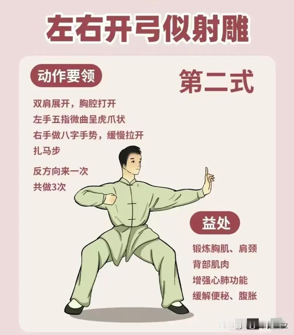 八段锦是一种传统的中国健身运动,起源于古代的气功和导引术。它由八个连续的动作组成,每个动作都针对不同的身体部位和脏腑进行锻炼。八段锦的动作相对柔和、缓慢,注重呼吸与动作的配合,旨在通过舒展筋骨、调理气血来达到健身养生的效果。 八段锦的八个动作各自具有不同的功效,这些动作综合起来,可以全面调理身体,增强身体的柔韧性和平衡性,提高身体的健康水平。 两手托天理三焦:这个动作可以拉长脊椎和颈肩部肌肉,有助于调理气血和稳定情绪。对于长期坐着工作的人,这个动作有助于缓解肩颈疼痛和腰疼等问题。 左右开弓似射雕:这个动作可以增强心肺功能,促进肺部气机的流通。同时,它还可以增强肩部和胸部的活动能力,对预防和治疗肩周炎和颈椎病有一定的帮助。 调理脾胃单举手:这个动作可以增强脾胃的功能,促进消化和吸收。它还可以拉伸身体两侧的肌肉,增强身体的柔韧性和平衡性。 五劳七伤往后瞧:这个动作可以增强脊椎的灵活性和稳定性,同时拉伸身体前侧的肌肉,缓解身体的疲劳和紧张。这个动作特别适合久坐办公室的上班族。 摇头摆尾去心火:这个动作可以缓解心火过旺的问题,促进身体的阴阳平衡。它还可以增强腰部的力量和灵活性,对预防和治疗腰疼有一定的帮助。 两手攀足固肾腰:这个动作可以增强肾脏的功能,缓解肾虚的问题。同时,它还可以拉伸腰部的肌肉和韧带,增强腰部的柔韧性和平衡性。 攒拳怒目增力气:这个动作可以增强肝脏的功能,促进身体的血液循环。它还可以增强手臂和腿部的力量和灵活性,对预防和治疗肌肉无力、萎缩等问题有一定的帮助。 背后插拳百病消:这个动作可以增强身体的整体力量和稳定性,促进身体的血液循环和代谢。长期练习可以增强身体的免疫力,提高身体的健康水平。 注意事项: 正确姿势:练习八段锦时,要确保每个动作的标准性和正确性,以避免因姿势不当而导致的伤害。 适度锻炼:虽然八段锦相对柔和,但也不宜过度锻炼,应根据自己的身体状况合理安排锻炼时间和强度。 长期坚持:要想获得良好的健身效果,需要长期坚持练习八段锦,不能三天打鱼两天晒网。 适用人群: 八段锦适合各个年龄段的人群进行练习,特别是那些希望通过柔和运动来保持身体健康的中老年人。然而,对于身体状况较差或患有严重疾病的人,建议在开始练习前咨询医生的意见。 总之,八段锦作为一种传统的健身运动,对于提高身体柔韧性、调理内脏功能、促进血液循环等方面都有积极的作用。然而,它并非万能的神药,不能治疗所有疾病。在练习八段锦时,应结合自身身体状况,合理安排锻炼计划,并在需要时咨询专业医生的意见。