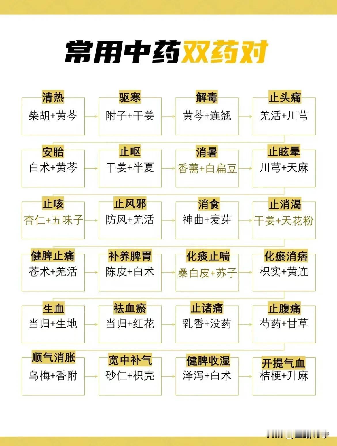 常用中药三药对,健康生活离不开 在中医的理论体系中,有许多常用的中药三药对,它们不仅在中医临床中有着广泛的应用,也是我们日常养生保健的重要手段。今天,就让我们一起来了解一下这些常用的中药三药对,帮助您更好地关注身体健康。 一、肺寒 症状:咳嗽、咳痰、气喘等。 常用药物:干姜+细辛+五味子。干姜温肺散寒,细辛止痛祛痰,五味子敛肺止咳。 二、气郁 症状:情绪低落、烦躁易怒等。 常用药物:木香+枳壳+桔梗。木香行气宽中,枳壳消积除痞,桔梗宣肺排脓。 三、头晕 症状:头晕目眩、头痛等。 常用药物:葛根+川芎+天麻。葛根解肌退热,川芎活血行气,天麻平肝潜阳。 四、呃逆 症状:气逆上冲,引起呃逆。 常用药物:丁香+柿蒂+干姜。丁香温中降逆,柿蒂降气止呃,干姜温中散寒。 五、肝郁 症状:情绪不畅、易怒或抑郁等。 常用药物:柴胡+郁金+青皮。柴胡疏肝解郁,郁金活血止痛,青皮行气消积。 六、肝热 症状:头晕头痛、烦躁易怒等。 常用药物:夏枯草+黄芩+龙胆草。夏枯草清肝明目,黄芩清热燥湿,龙胆草泻肝胆实火。 七、痰湿 症状:身体沉重、痰多等。 常用药物:陈皮+茯苓+白术。陈皮理气健脾,茯苓利水渗湿,白术健脾益气。 八、湿热 症状:身体发热、口苦等。 常用药物:黄柏+栀子+薏苡仁。黄柏清热燥湿,栀子泻火解毒,薏苡仁利水渗湿。 九、腹胀 症状:腹部胀满不适等。 常用药物:莱服子+槟榔+枳实。莱服子理气宽中,槟榔消积除痞,枳实破气消积。 十、腰痛 症状:腰部疼痛等。 常用药物:杜仲+补骨脂+川断。杜仲补肝肾,强筋骨,川断补肝肾,强壮筋骨。 十一、咽炎 症状:咽喉疼痛、干燥等。 常用药物:玄参+石斛+罗汉果。玄参清热凉血,石斛养阴润喉,罗汉果利咽化痰。 十二、鼻炎 症状:鼻塞、流涕等。 常用药物:蕾香+辛夷+鹅不食草。蕾香祛风通窍,辛夷散风寒,鹅不食草解毒利鼻窍。 十三、脾虚 症状:食欲不振、腹胀等。 常用药物:白术+党参+山药。白术健脾益气,党参健脾养胃,山药健脾开胃。 以上就是一些常用的中药三药对,它们在中医临床中有着广泛的应用,也是我们日常养生保健的重要手段。了解这些药对,有助于我们更好地关注身体健康,预防和治疗各种疾病。让我们一起努力,保持健康的生活方式吧!#健康科普#