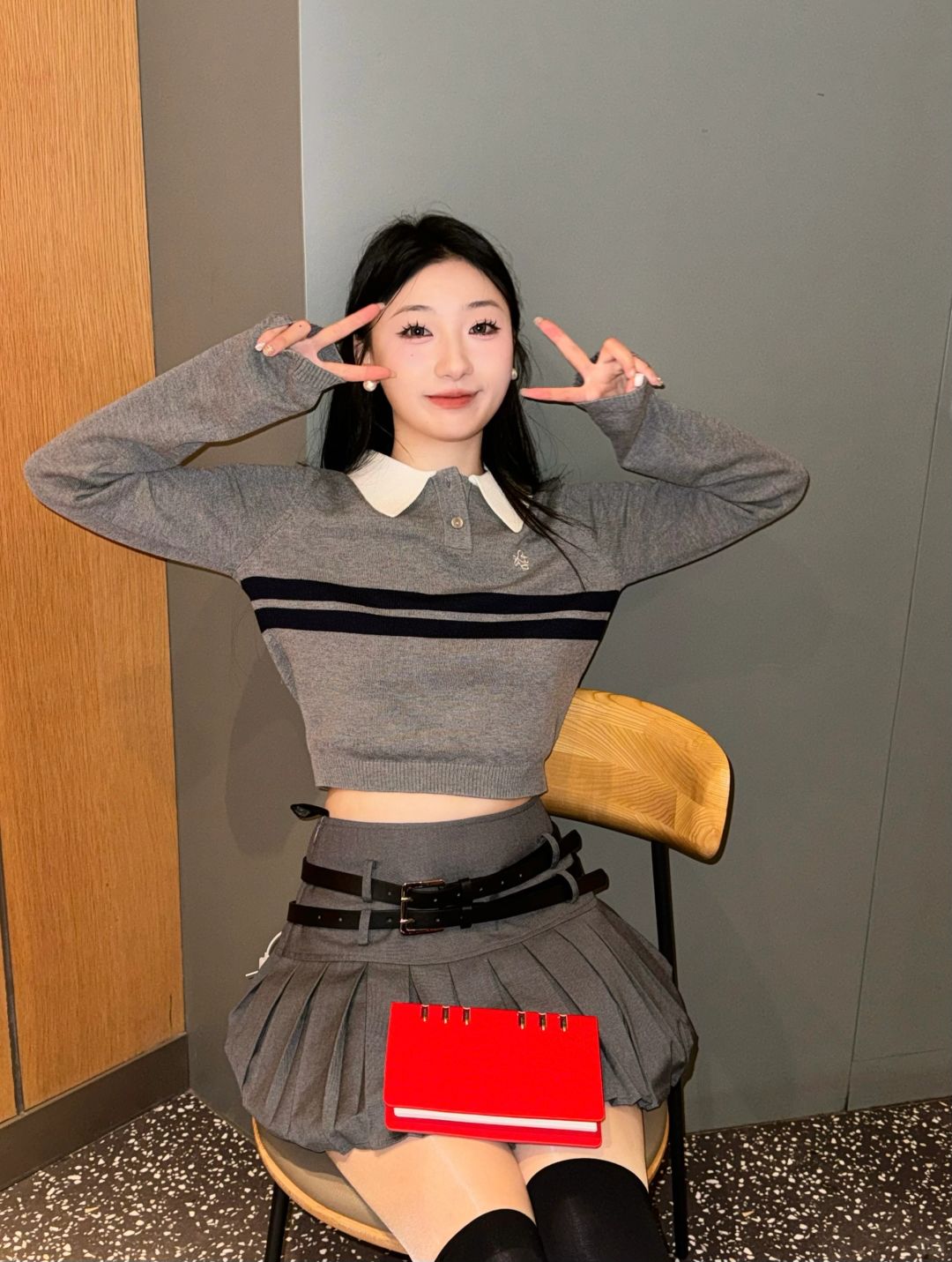 灰色学院风套装搭小腿袜好韩系啊 miu里miu气的 大小姐风