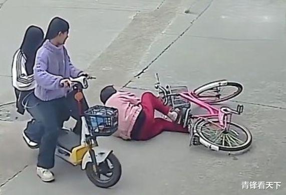 如果公开的视频确为事发经过,估计不少人看后,都会认为,女子倒地是受惊吓而引发,应该与两个骑电动车的女孩没有多大干系。