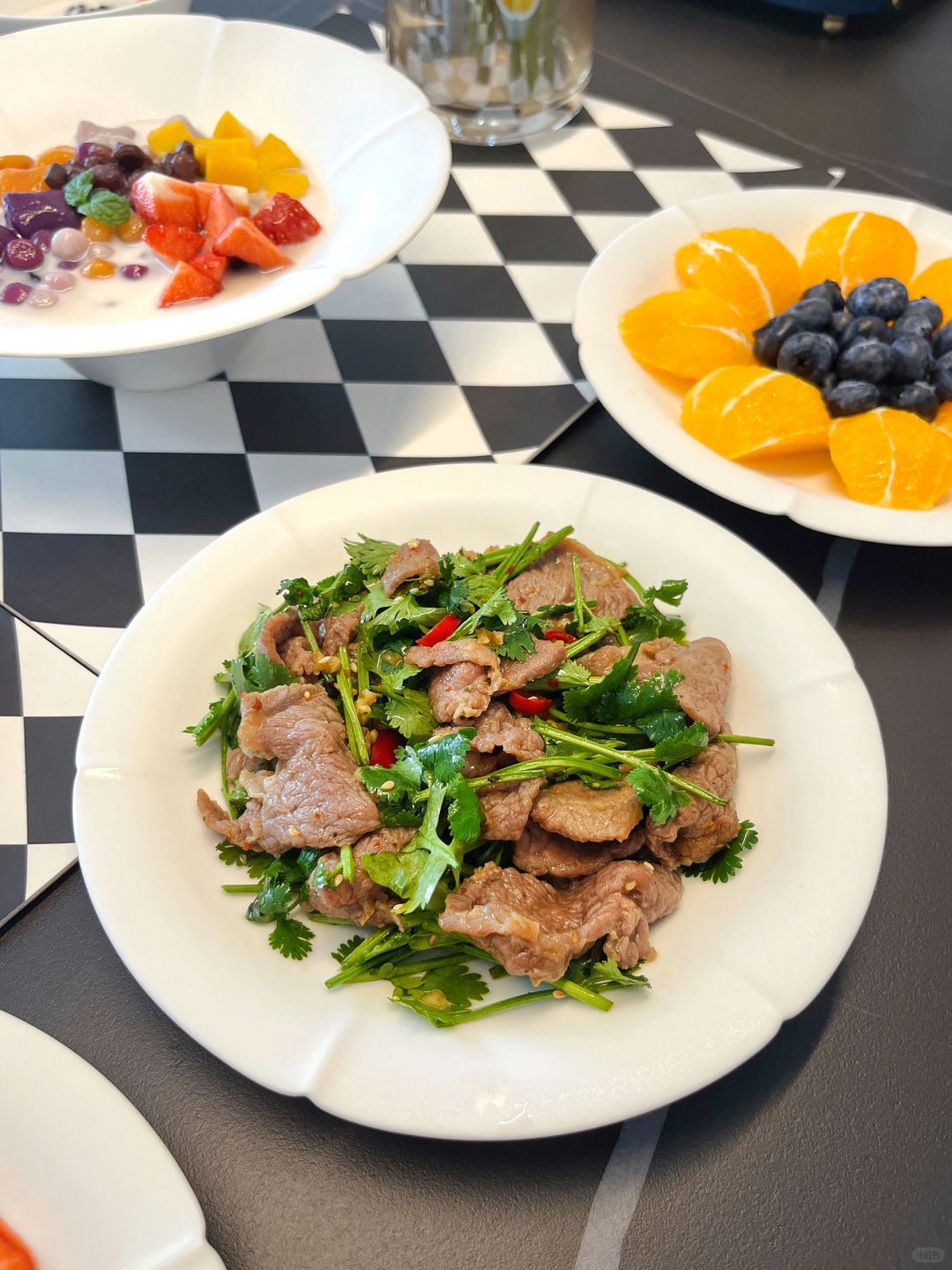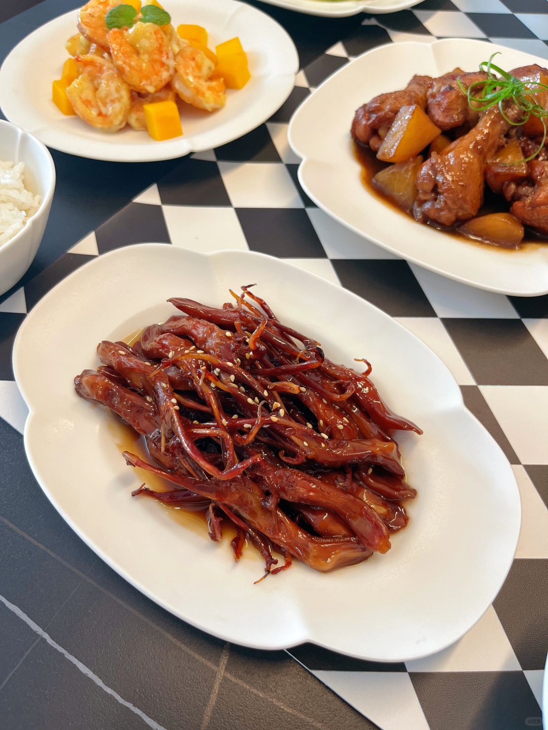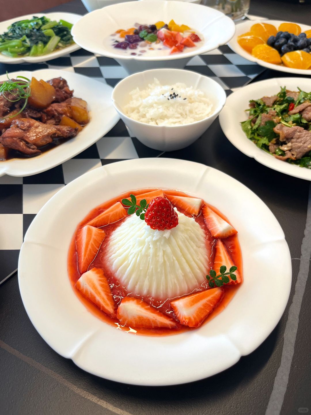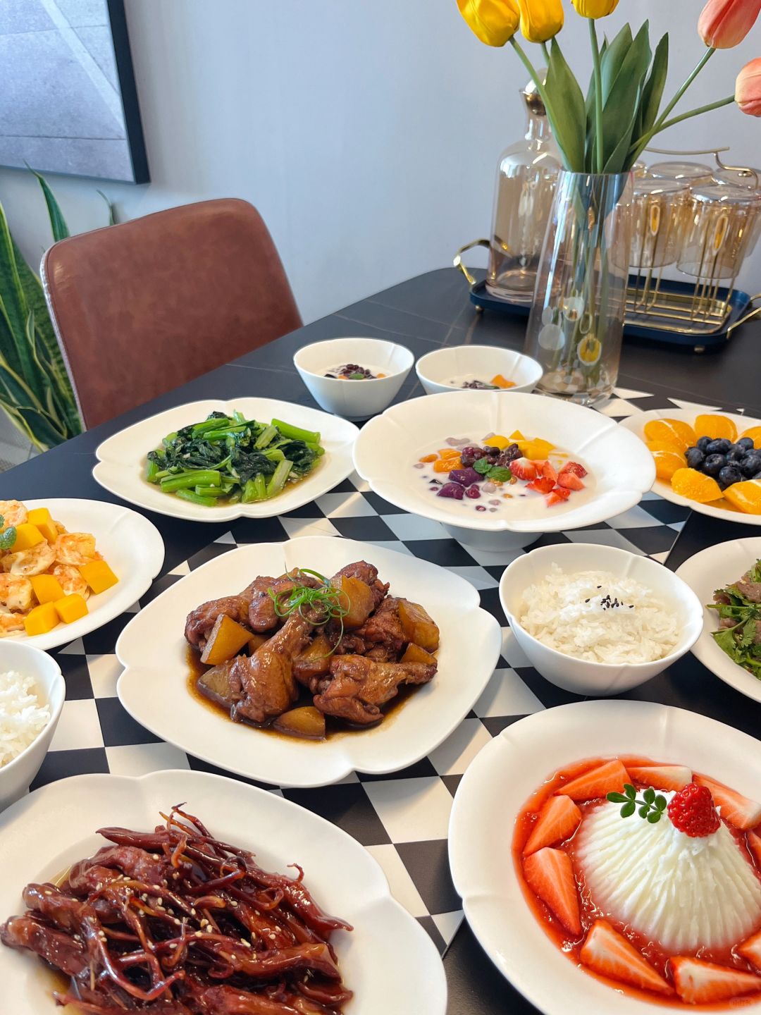 生活在慢节奏的小城市,一家三口 三餐四季,有志同道合的爱人,健康可爱的孩子,还有身体健康又通情达理的父母,普普通通的日子也很幸福! 【今日菜单】 🥢红烧土豆鸡腿 🥢可乐鸭舌 🥢草莓山药 🥢蒜蓉菜心 🥢香菜牛肉 🥢芥末虾球 🥢水果芋圆烧仙草 🥢果盘:橙子 蓝莓