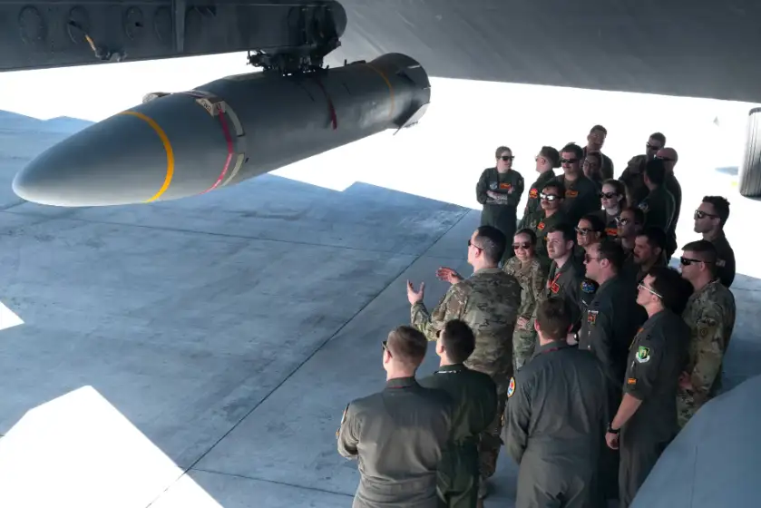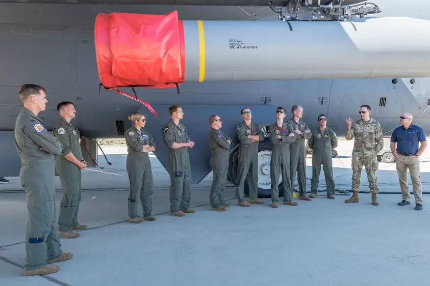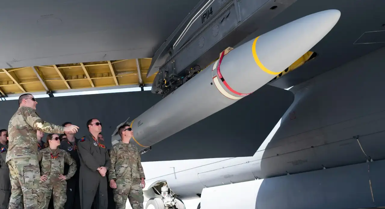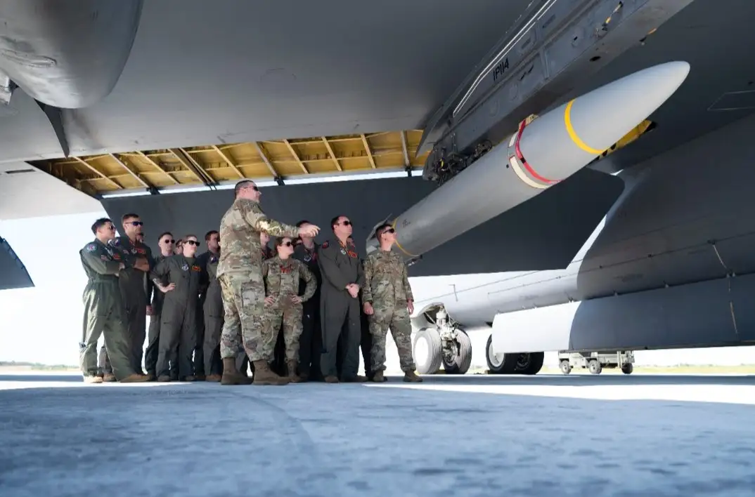 美军的高超音速导弹跑到关岛“班门弄斧”了! 近日有媒体公开了在上个月月底美国空军一架携带有AGM-183A高超音速导弹的B-52在关岛安德森空军基地进行培训的图片; 图片中一位看似教官的人正在为士