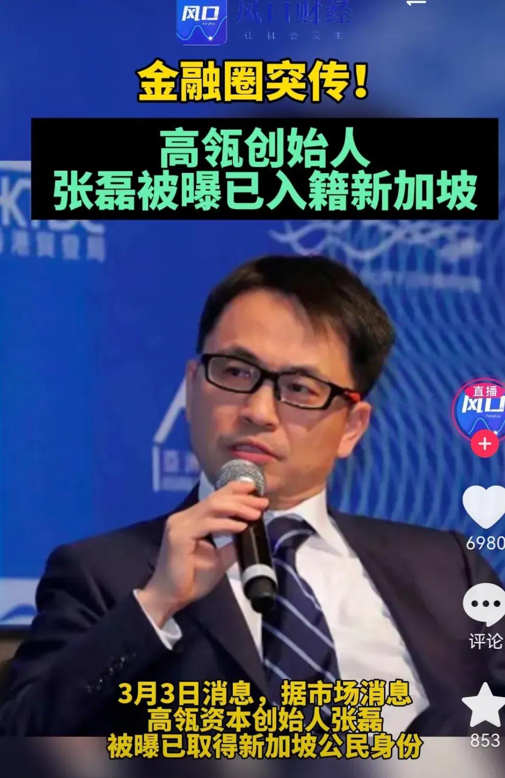 这两天又爆出来高瓴资本创始人张磊加入了新加坡国籍,高瓴总部也搬离中国,我们国家不应该如此的宽容,对一个没有家国情怀的富人,应该增加高额的弃籍税。