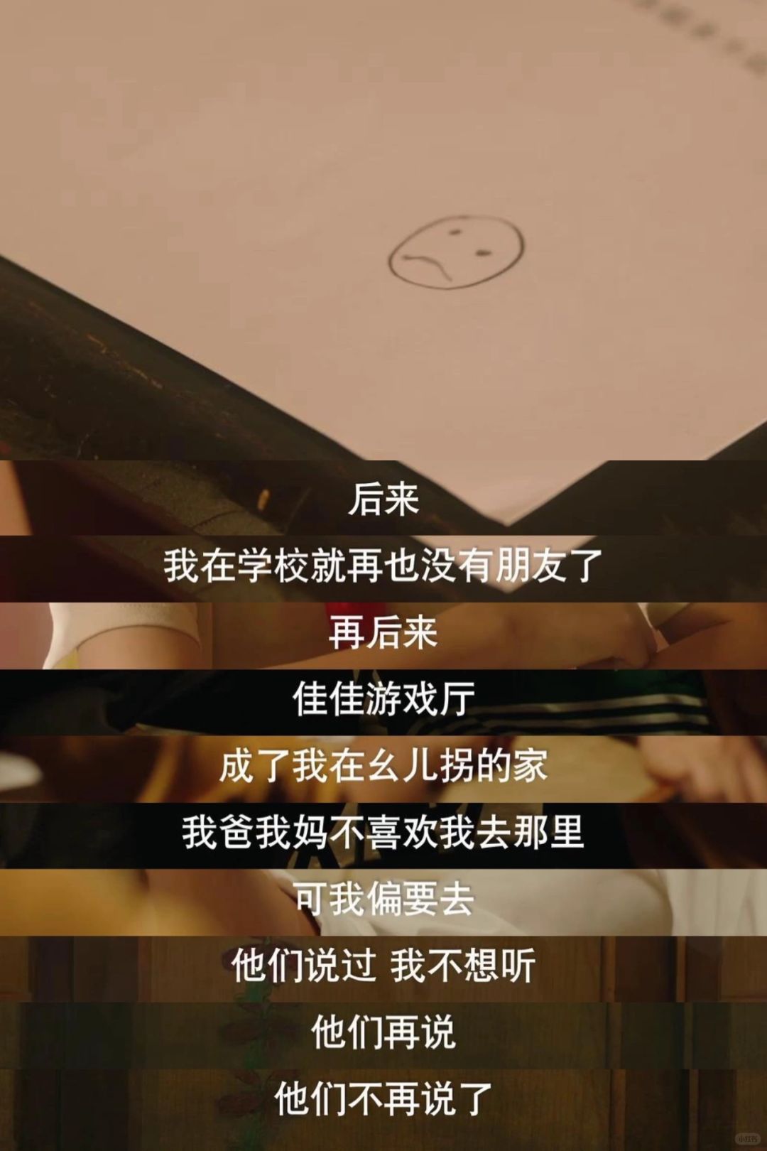 后来长大,她会在被挨打的时候立刻同样欺负回来,会不在意同学目光站在乒乓球桌甘愿罚站,她明明满脑子都是外界的声音,却能努力克制自己不再做讨好型人格,坚决不做顺从的小孩。