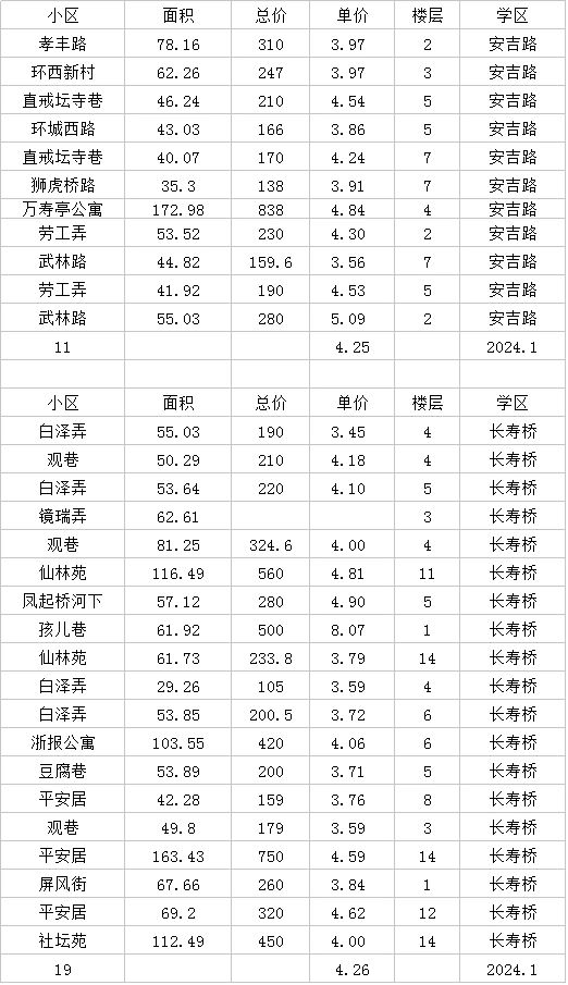 最终的成交 文澜实验学校 卖鱼桥小学 安吉路实验 长寿桥小学