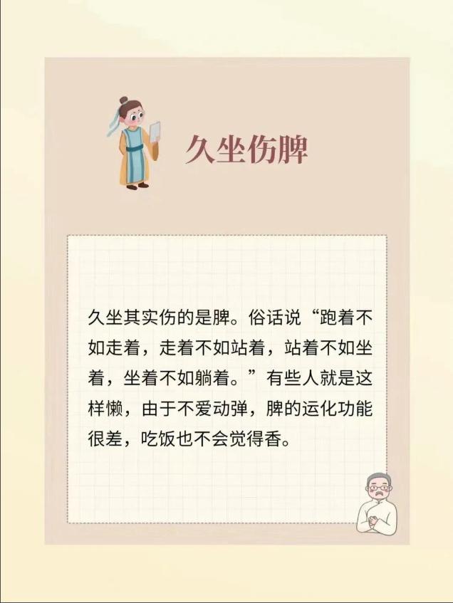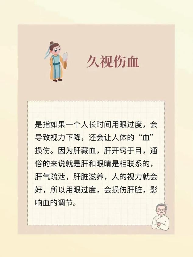 《黄帝内经》指出,视、卧、坐、立、行五种动作持久过度的疲劳,均能伤及血、气、肉、