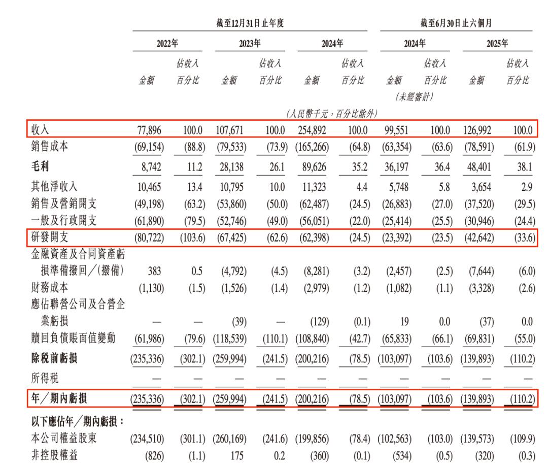 优艾智合将亏损主要归因于研发投入和业务扩张,而且从招股书数据来看,2022年至2025年上半年,公司研发投入累计超2.5亿元,截至2025年6月30日,公司拥有144名研发人员,占员工总数的34.6%。
