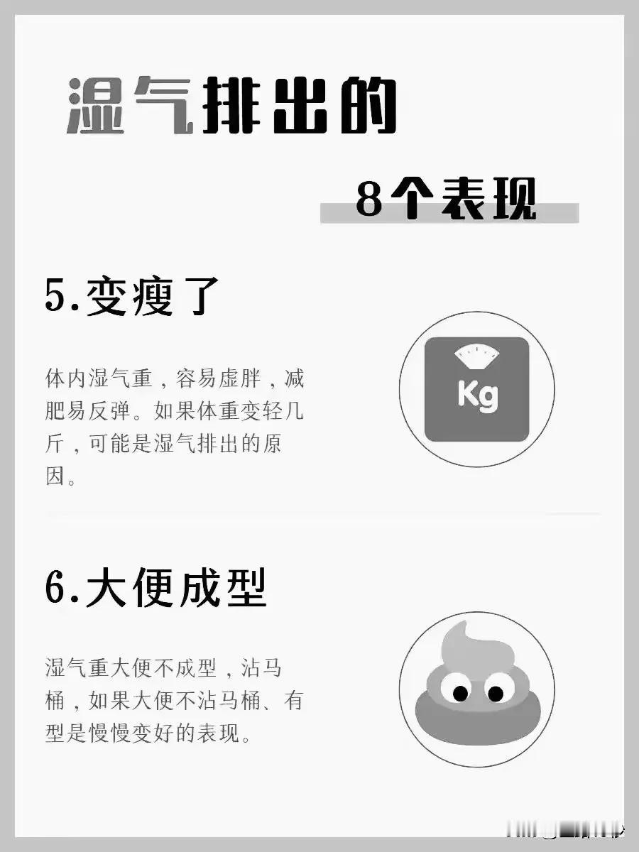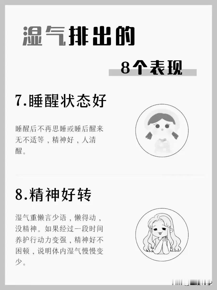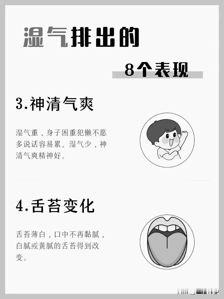 湿气排出的8个表现,你了解吗? 湿气,作为中医理论中的一个重要概念,常常与我们的身体健康息息相关。当体内湿气过重时,身体会出现一系列的不适症状。那么,当湿气逐渐排出时,我们的身体会有哪些变化呢?下面,就让我们一起了解湿气排出的8个表现。 1. 晨尿不再浓黄 早晨起床后,湿气重的人通常会发现自己的尿液颜色深黄,有时甚至如同浓茶。然而,当湿气逐渐排出时,尿液会变得相对清澈,颜色也会变浅。 2. 食欲明显增强 湿气重的人往往食欲不振,吃什么都觉得没有味道。但是,当湿气开始排出时,你会发现自己的胃口逐渐好转,对食物的兴趣也增加了。 3. 神清气爽,精神焕发 湿气重的人常常感到身体沉重,精神不振,容易感到疲劳。而当湿气排出后,你会感到自己变得神清气爽,精神状态也明显好转。 4. 舌苔变化明显 湿气重时,舌苔往往白腻或黄腻,口中黏腻不爽。然而,随着湿气的排出,舌苔会逐渐变薄,颜色也会变得正常,口中不再感到黏腻。 5. 体重逐渐减轻 湿气重的人容易虚胖,减肥时也容易反弹。但是,当湿气排出后,你会发现自己的体重逐渐减轻,身体也变得更加苗条。 6. 大便逐渐成型 湿气重的人大便往往不成型,容易沾马桶。然而,随着湿气的排出,大便会逐渐变得成型,不再沾马桶。 7. 睡醒后状态良好 湿气重的人睡醒后常常感到思睡或睡后醒来不适。但是,当湿气排出后,你会发现自己睡醒后状态良好,精神饱满。 8. 行动力增强,精神好转 湿气重的人往往懒言少语,行动迟缓,精神不振。但是,当湿气排出后,你会感到自己的行动力逐渐增强,精神状态也明显好转。 综上所述,湿气排出的8个表现涵盖了尿液、食欲、精神状态、舌苔、体重、大便、睡醒状态以及行动力等多个方面。如果你发现自己有以上表现之一或多个,那么恭喜你,说明体内的湿气正在逐渐排出,你的身体也在逐渐变得健康。#清风计划# #健康科普排位赛# #健康科普#