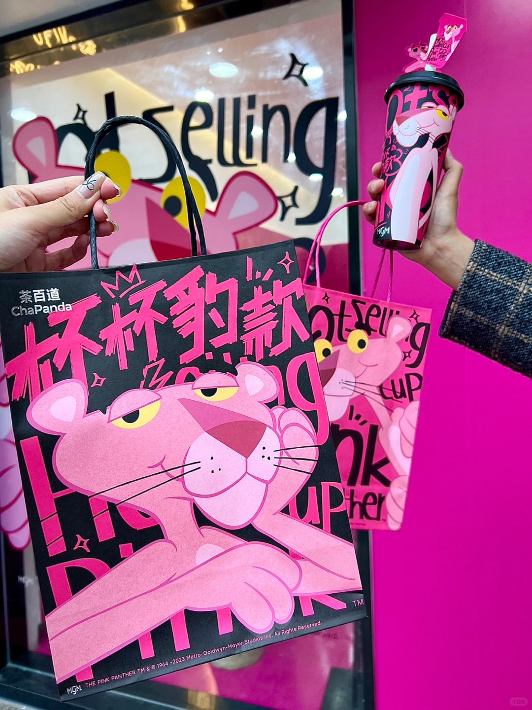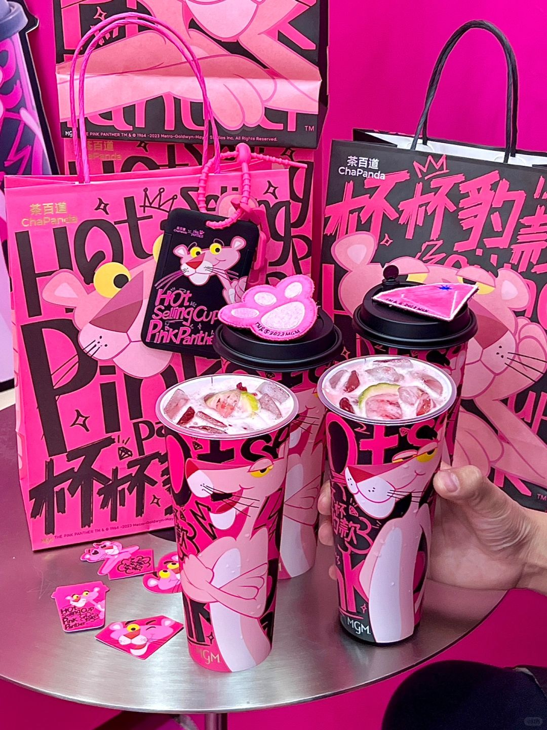 啊啊啊茶百道这次新品也太会了吧!!! 和粉红豹联动真!的!好!炸!裂! 就问谁能拒绝Blackpink风啊啊!!太酷了! 周边手提袋、贴纸 、魔术发贴、行李牌…配色一整个戳中我!全部拿下!! 粉色主题店也好好看,随便拍都出片! 洛神山楂莓 (正常冰)也可以做热饮 新品豹豹豹好喝!公主洛神花+山楂+草莓,花果香浓郁!酸酸甜甜好清新!