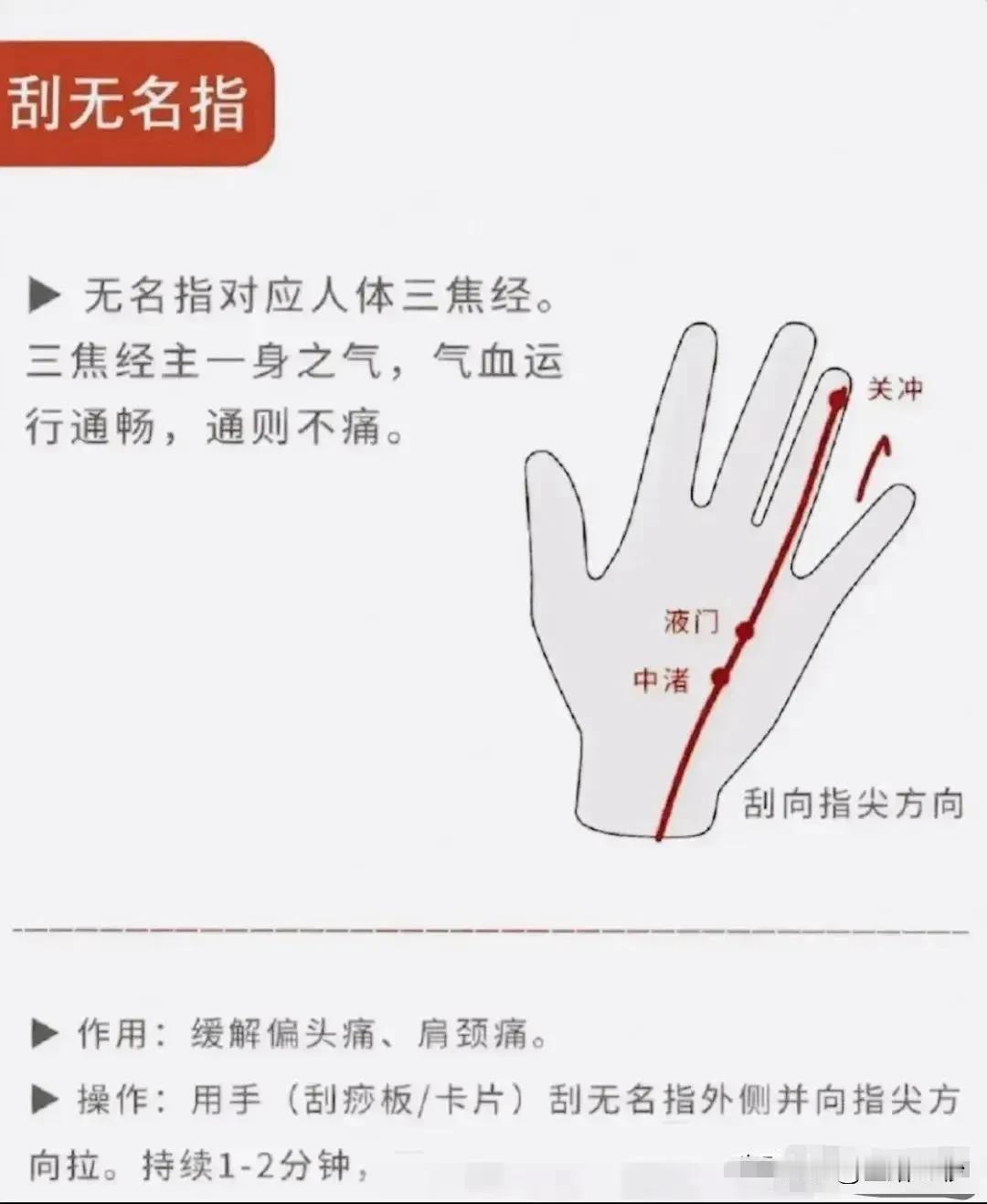 刮手指解百病:五条经络疏通五脏,健康从指尖开始 您是否曾感到心慌、心痛、失眠的困扰?今天,就让我们一起探讨如何通过刮手指来疏通五脏经络,达到解百病的效果。 首先,让我们从拇指开始。拇指与肺经相连,经常刮拇指可以治疗体虚、易感冒、咳嗽、胸闷、咽喉肿痛等症状。每天用刮痧板轻轻刮拭拇指,不仅可以增强肺气,还能提高身体免疫力。 接下来是食指。食指与大肠经相连,经常刮食指可以治疗偏头痛、颈肩痛、便秘、腹泻、消化不良等症状。每天刮拭食指,有助于调整大肠功能,改善消化系统问题。 中指则与心包经相连。心包经与心脏功能密切相关,经常刮中指可以治疗心慌、心痛、失眠等症状。每天刮拭中指,有助于舒缓心脏压力,提高睡眠质量。 无名指与三焦经相连。三焦经主管人体水液代谢和气血运行,经常刮无名指可以治疗体虚、易感冒、咳嗽、胸闷、咽喉肿痛等症状。每天刮拭无名指,有助于调整三焦功能,提高身体抵抗力。 最后是小指。小指与小肠经相连,经常刮小指可以治疗消化不良、腹泻等症状。每天刮拭小指,有助于促进小肠蠕动,改善消化问题。