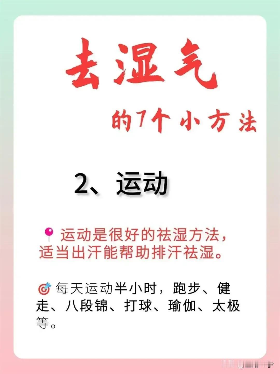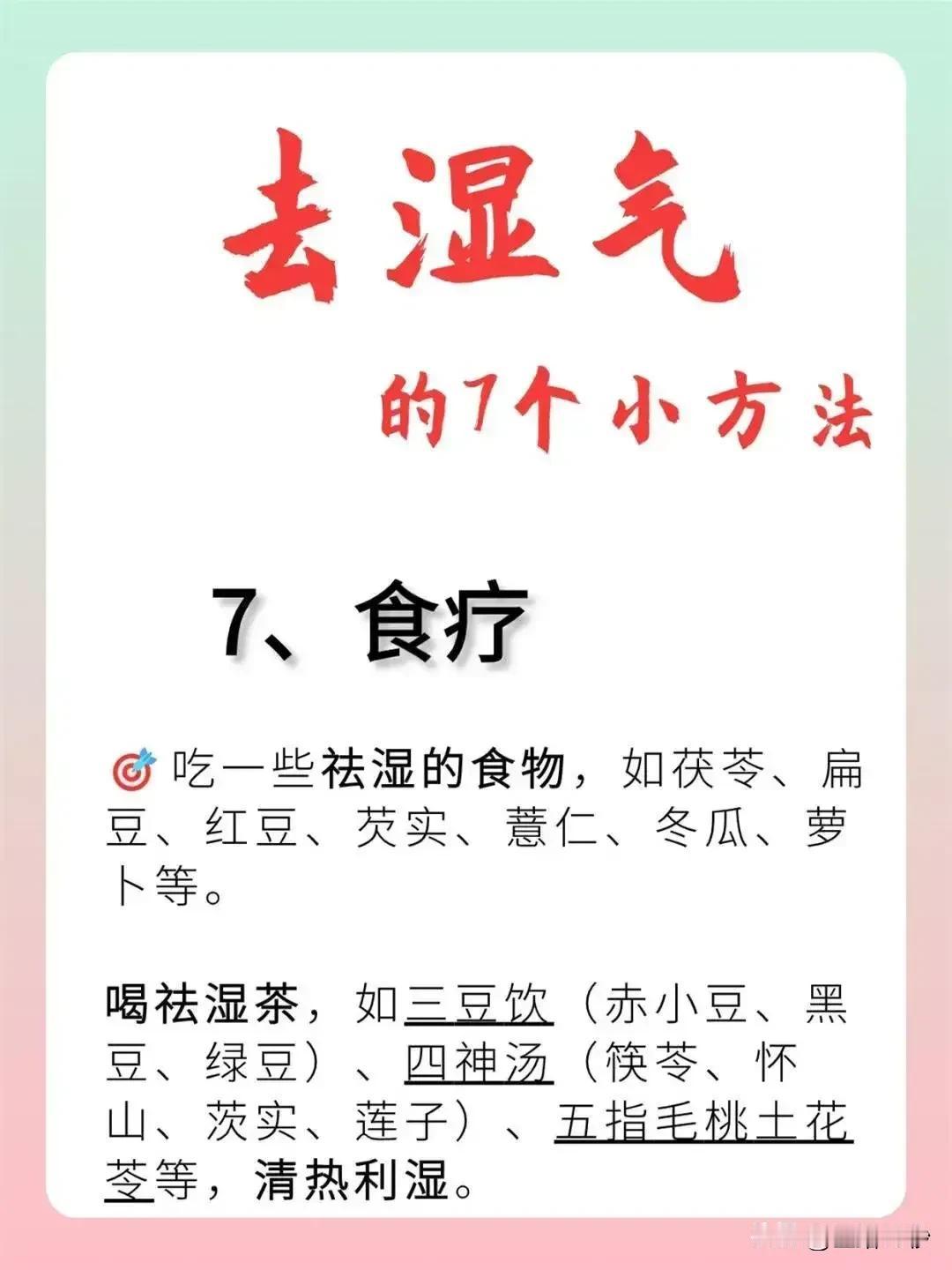 回南天到了,湿气也随之而来,让人感到不舒服。不过别担心,我有7个小方法,帮你轻松去湿气! 泡脚:每天坚持泡脚,不仅能舒缓疲劳,还能疏通经络,散寒除湿。试试加入一些艾叶或姜片,效果更佳哦! 运动:运动是祛湿的好帮手!适当出汗能排出体内多余的湿气,让你感觉更加轻松。不妨选择晨跑或瑜伽,让身体动起来! 艾灸:艾草是纯阳之物,能为身体补阳,排湿祛湿。定期艾灸,让你远离湿气困扰! 不熬夜:长期熬夜会耗损精气,加重身体内的湿气。养成良好的作息习惯,早睡早起,让身体得到充分的休息。 按穴位:体内湿气重跟脾有关,多按足三里穴可健脾胃,促进湿气排出。每天按摩几分钟,效果显著! 控制饮食:吃太多甜食、油腻重口还有生冷寒凉食物,会影响脾胃运化水湿,增加湿气负担。合理饮食,多吃清淡食物,让身体更健康。 食疗:吃一些祛湿的食物,如茯苓、扁豆、红豆、芡实、薏仁、冬瓜、萝卜等。这些食物有助于排出体内湿气,让你感觉更加清爽。