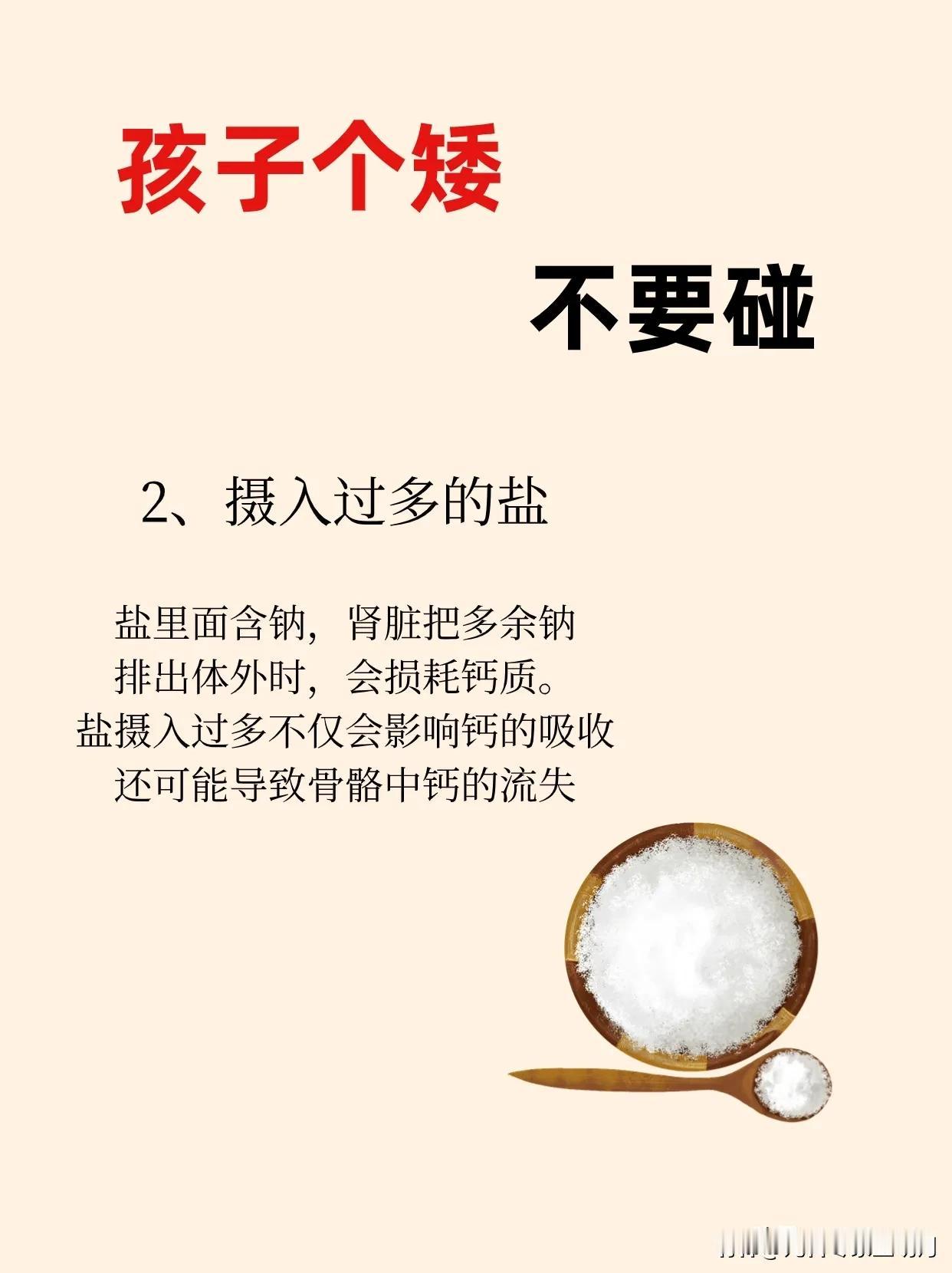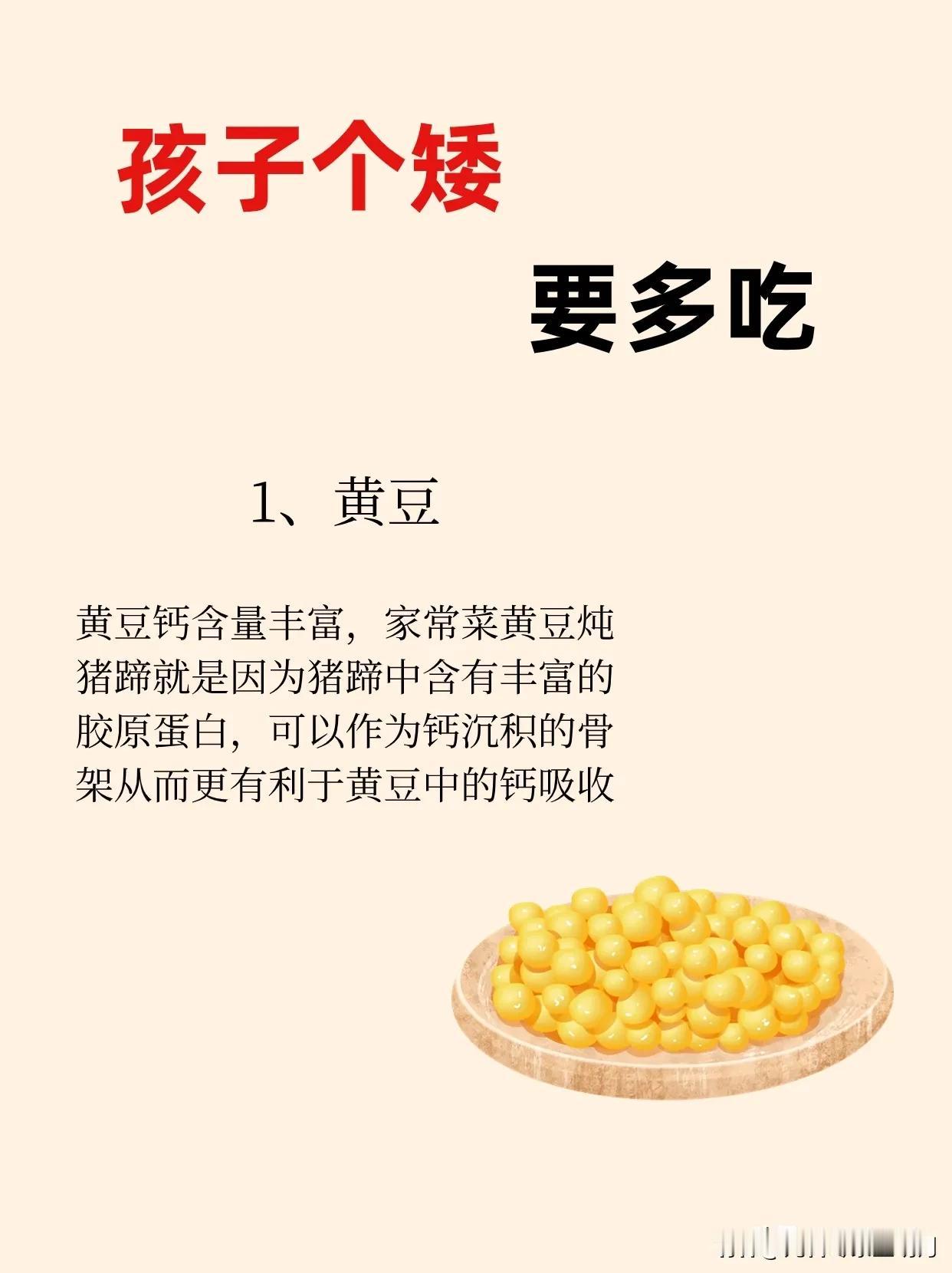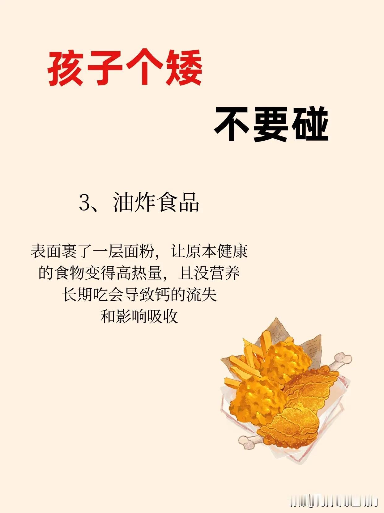 【家长必看】孩子身高偏矮,可能是饮食不当!这些食品,别再让孩子碰了! 每个孩子都是家庭的希望,每位家长都希望孩子健康成长。但是,有些日常食物可能会影响孩子的身高发育,你知道吗? 碳酸饮料:这些甜滋滋的饮料,可能会加速孩子体内钙的流失,长期饮用可能导致缺钙和骨质疏松。 高盐食品:盐摄入过多不仅影响钙的吸收,还可能加速骨骼中钙的流失。那些美味的加工食品,可能正是孩子身高发育的隐形杀手。 油炸食品:高热量、低营养,长期食用可能导致钙的流失和影响吸收。 含叶酸食物:菠菜、笋、苋菜等蔬菜虽美味,但其中的草酸和植酸可能与钙结合,形成沉淀物,阻碍钙的吸收。 那么,哪些食物有助于孩子身高发育呢? 黄豆:钙含量丰富,与猪蹄等富含胶原蛋白的食物搭配,更有利于钙的吸收。 水煮蛋:富含蛋白质和微量元素,促进钙的吸收。 豆腐:高钙食品,200克豆腐就能满足日常钙需求量的1/3。 鱼肉:富含卵磷脂、蛋白质和维生素,不仅有助于大脑发育,还能助力孩子身高增长。 让孩子远离那些可能影响身高发育的食物,多选择有益于骨骼发育的食品。让我们一起为孩子的未来,加油助力!