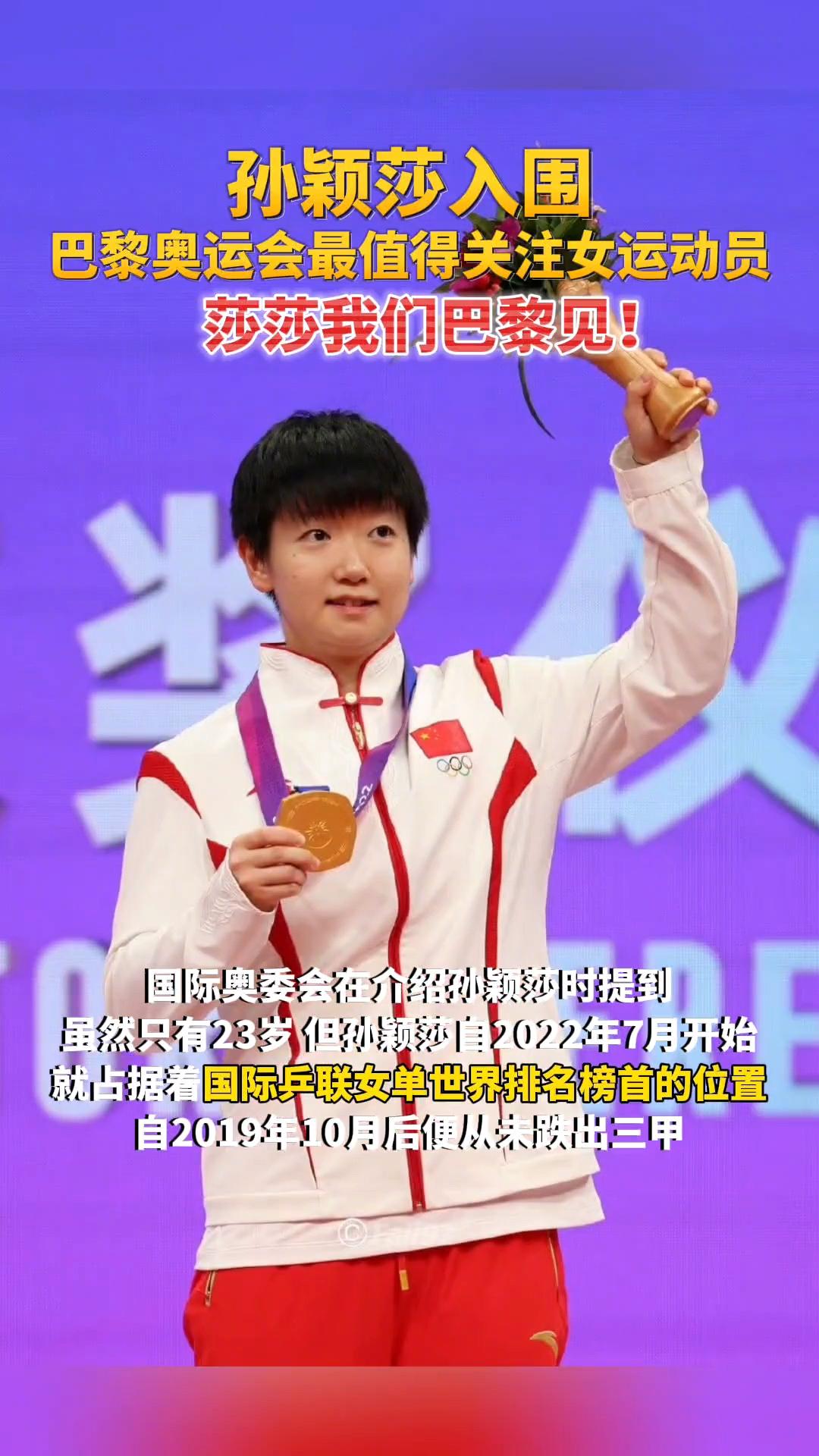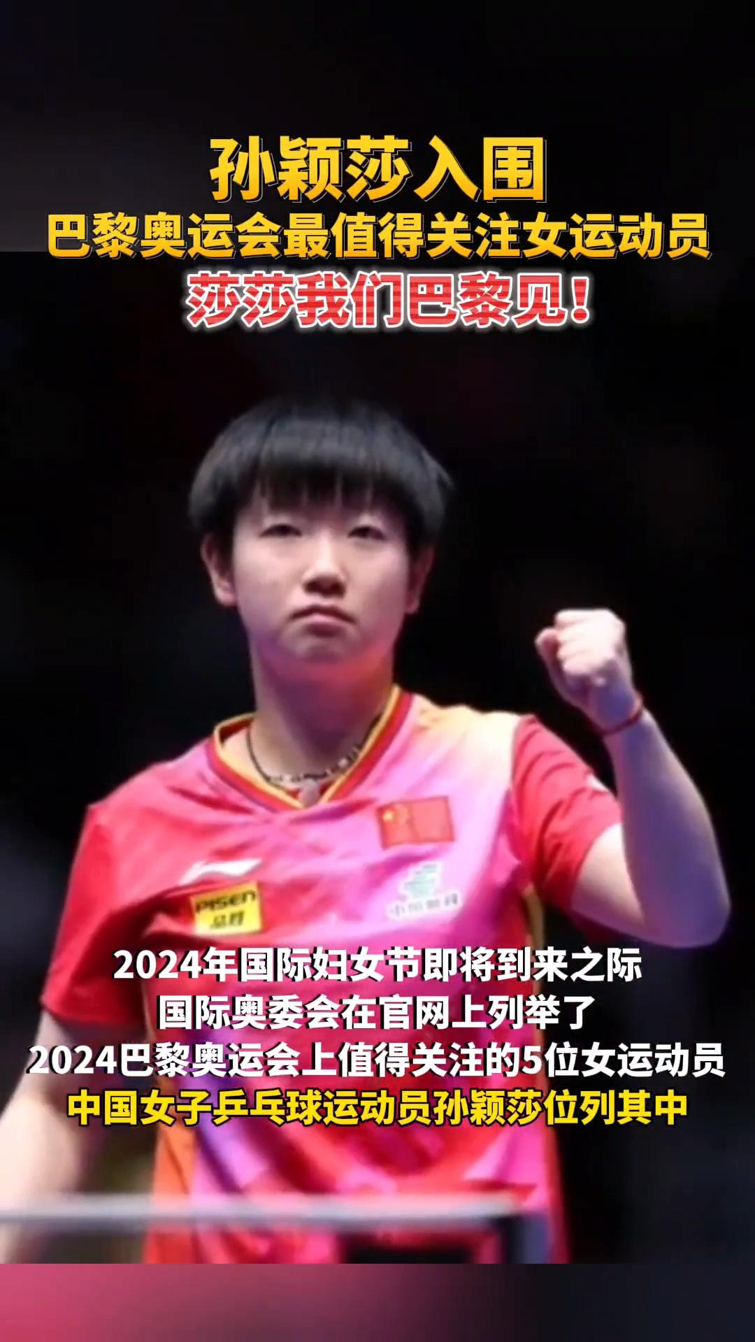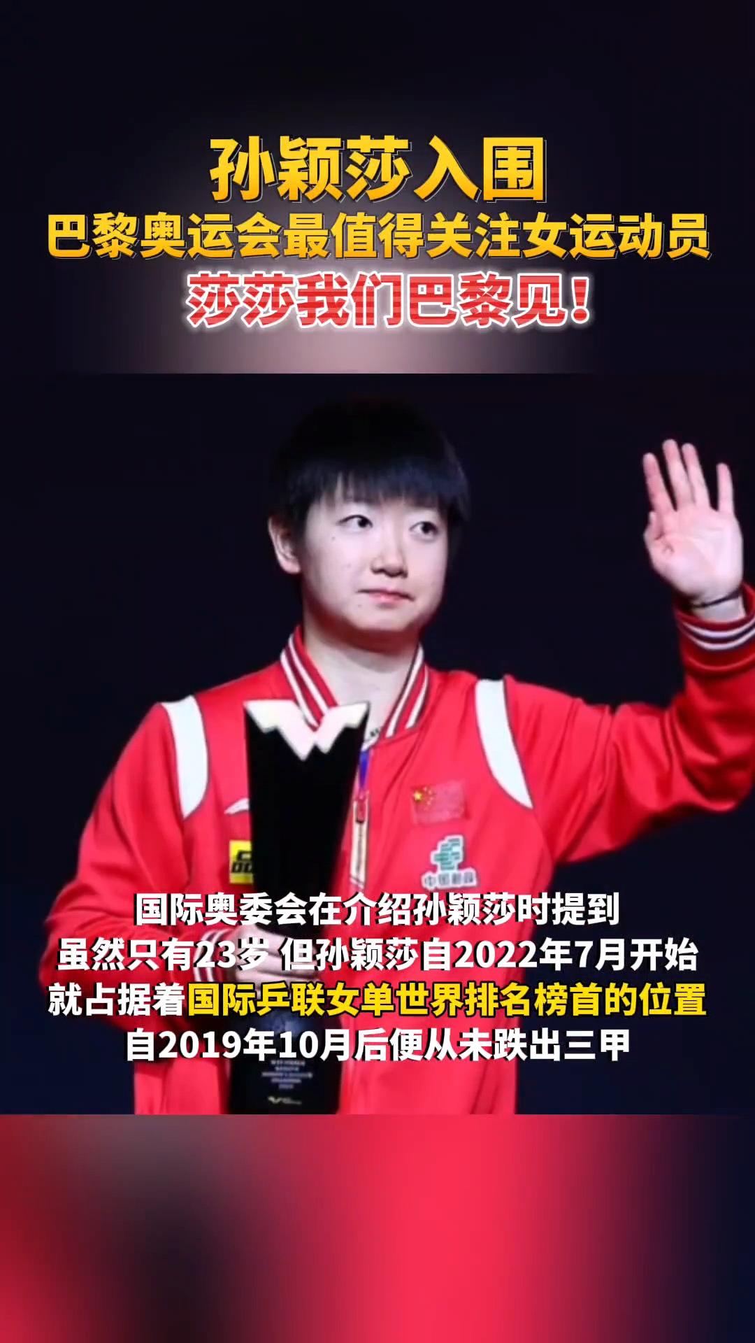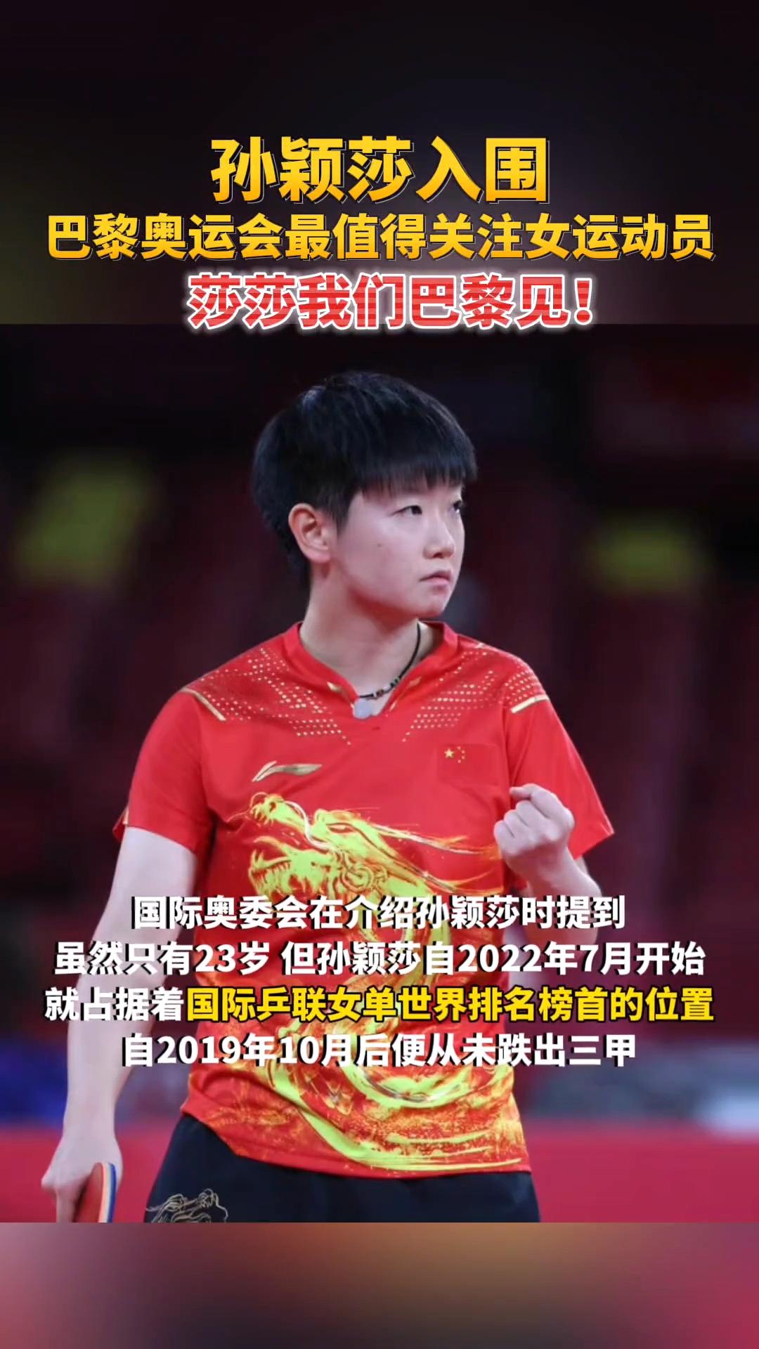 恭喜莎莎入围巴黎奥运会最值得关注的女运动员,实至名归,连喜欢她都让我觉得骄傲#万能生活指南# [赞][赞][赞]#孙颖莎值得期待# #孙颖莎好喜欢#