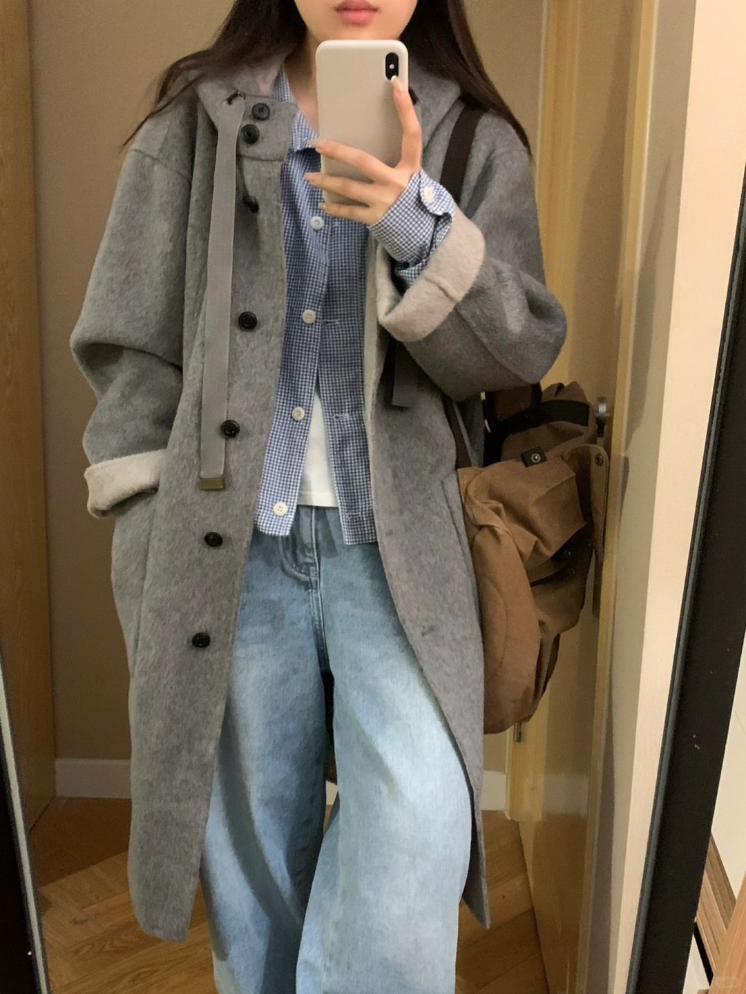 回到南方才敢穿大衣 这件叠穿卫衣毛衣也是ok的