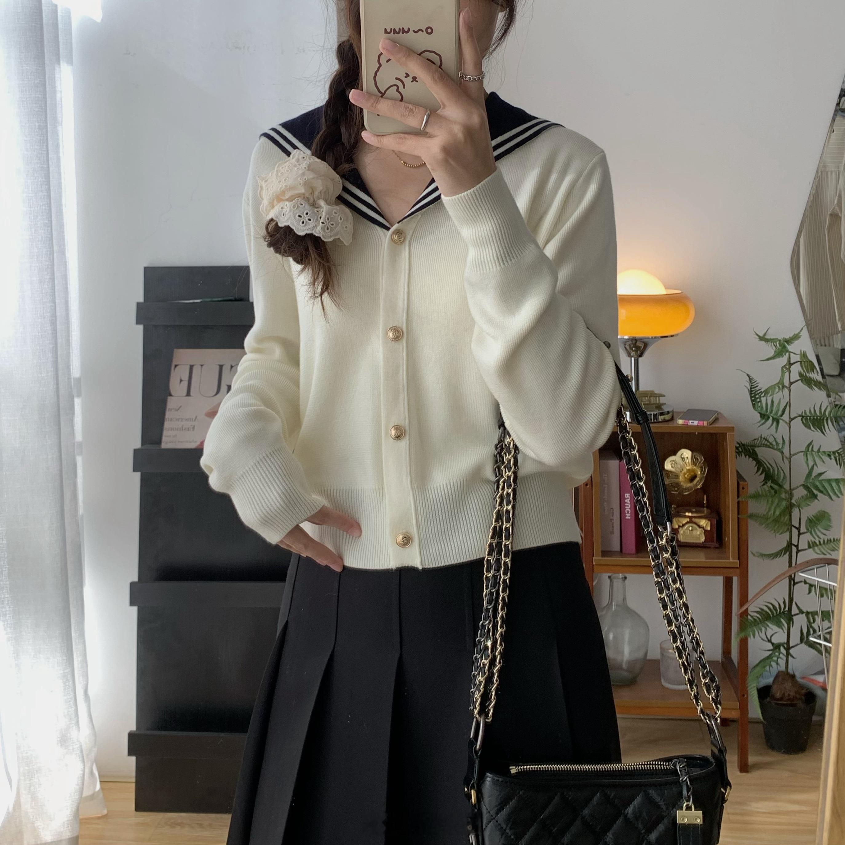插播一条海军领~我们周六约哦这个针织衫真的实物会比照片好看我是拿到实物才get到
