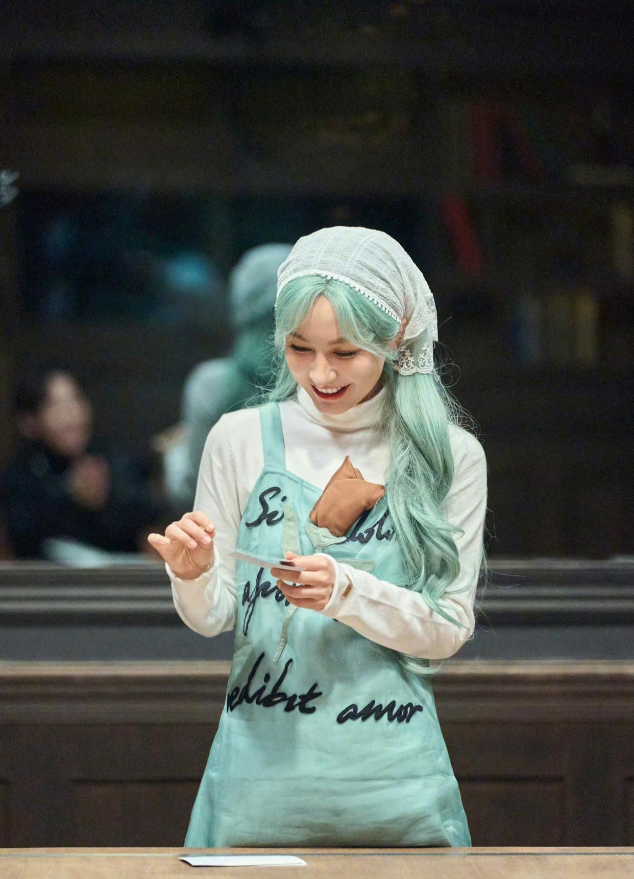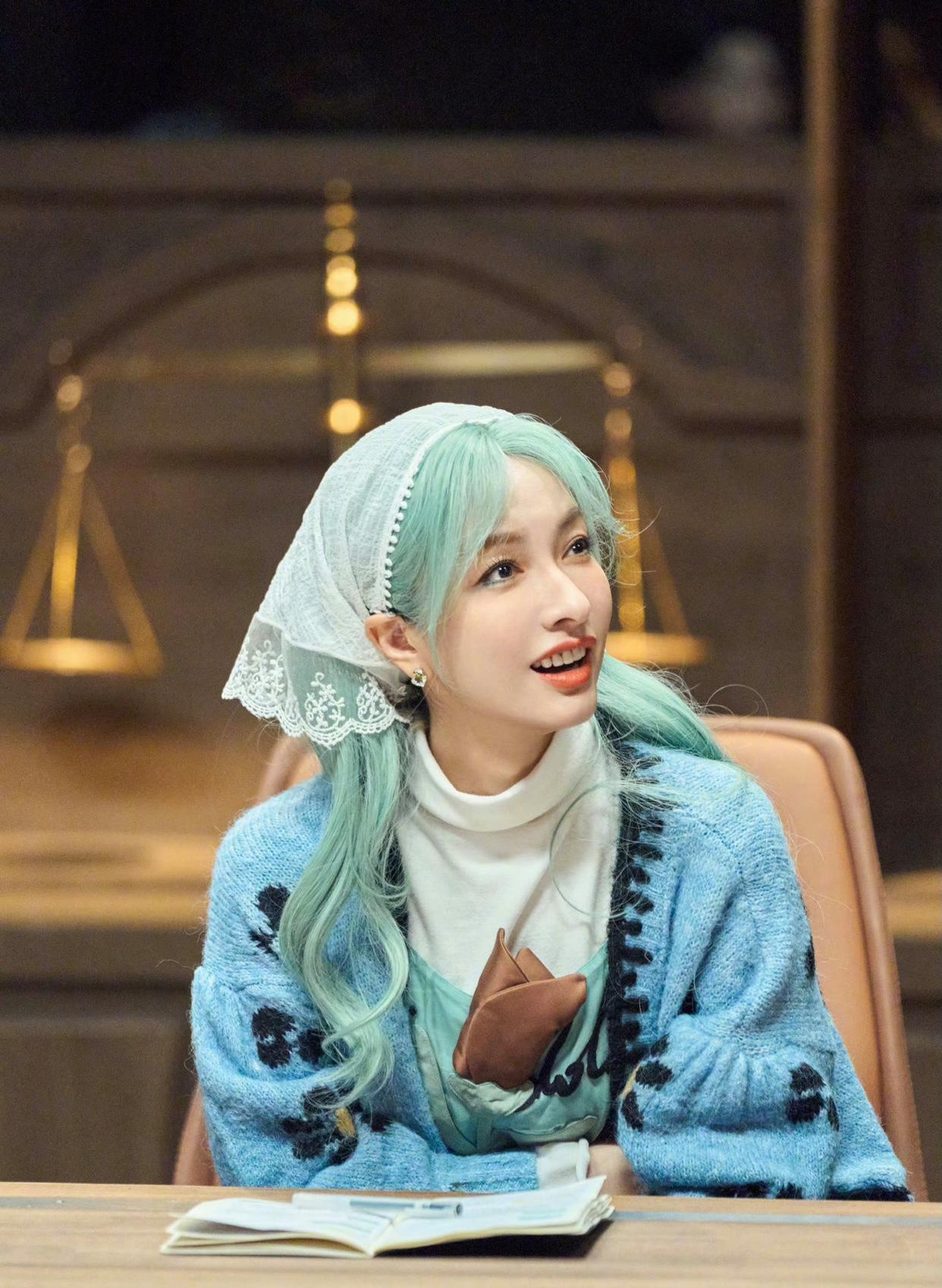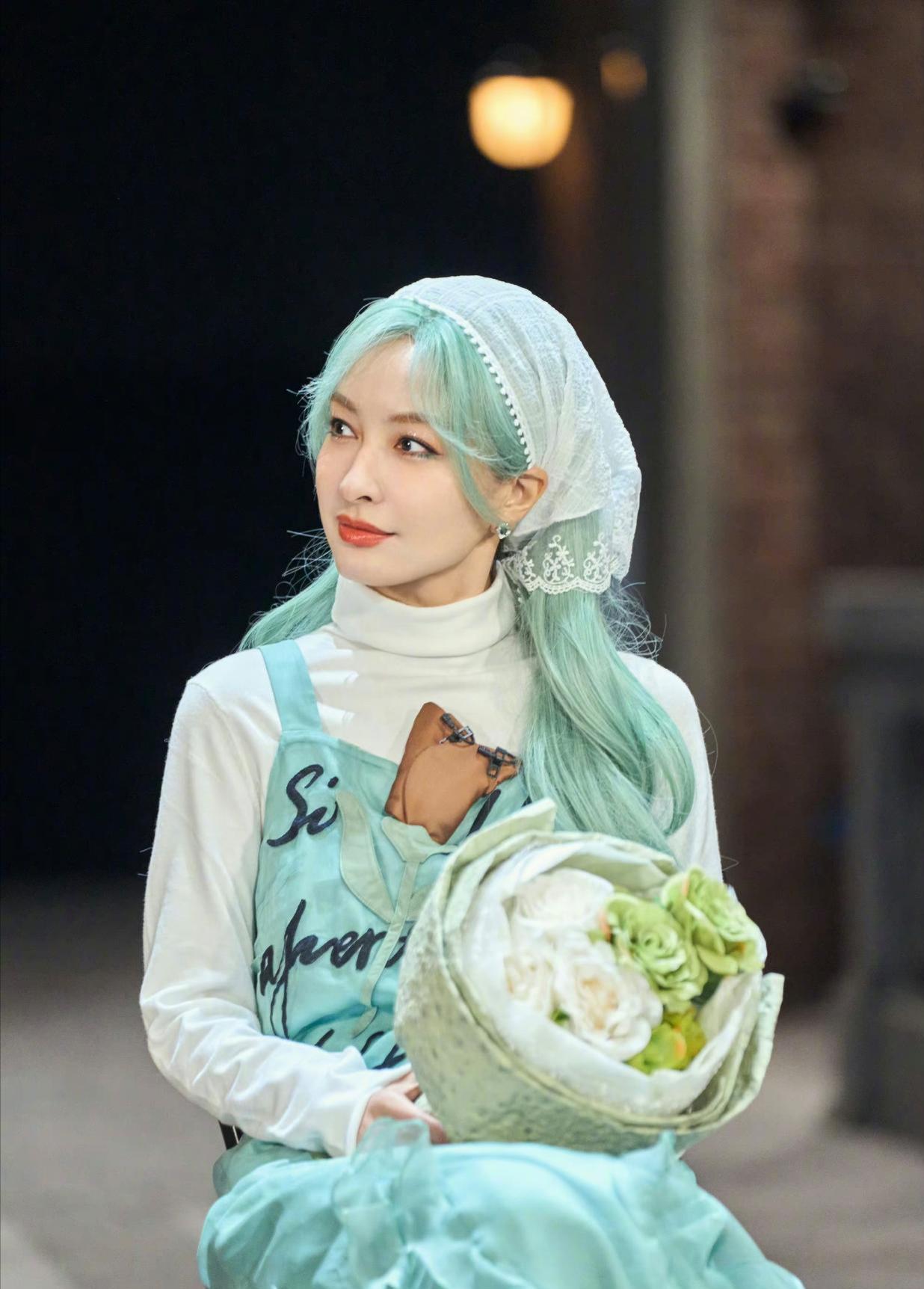 吴昕和绿发适配度好高,像极了童话故事书里的女主人公。绿长发大波浪+同色系雪纺花边