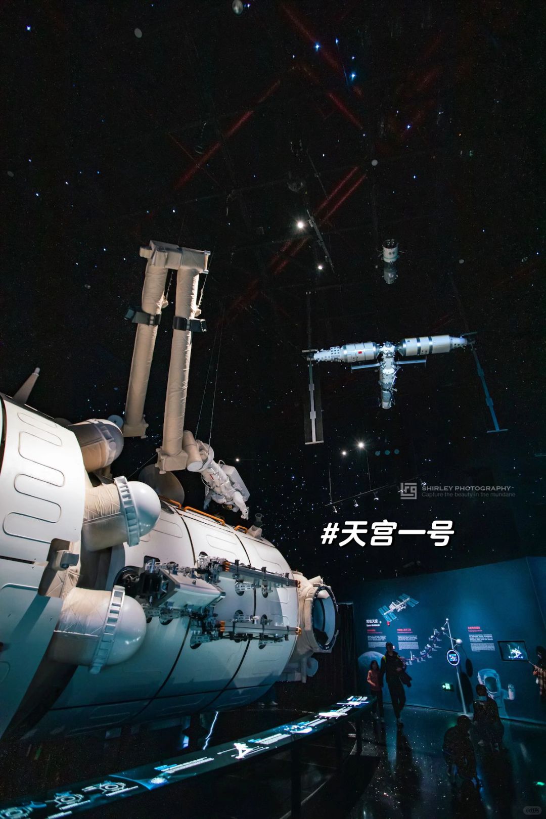 2️⃣F【征程】:讲述人类对宇宙的探索,有不少天文老物件。亮点是可以进入1:1复制的天宫一号核心舱,还可以从空中走廊俯瞰一楼【家园】里的星球模型们