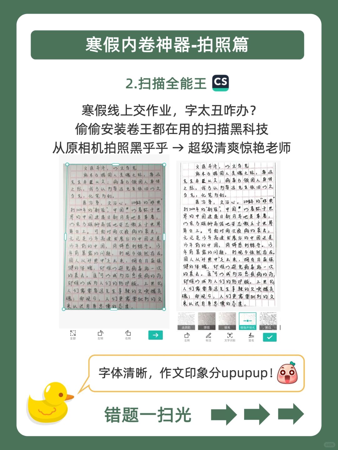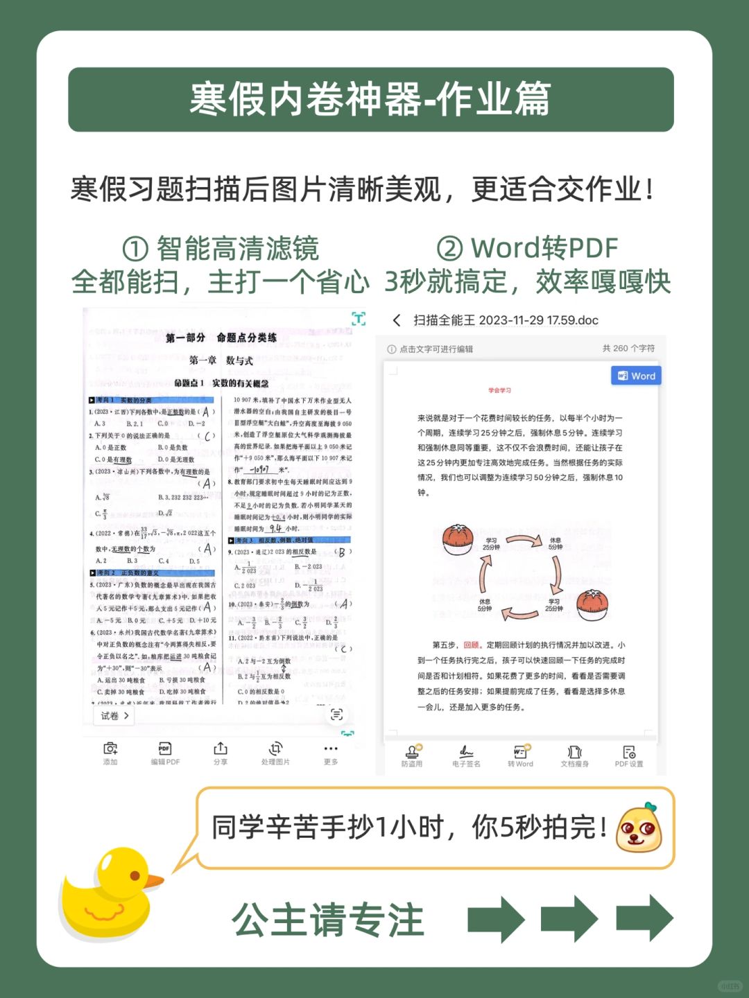 · [赞R]寒假摆烂不用怕,鸭鸭带你做学霸❗️ · [哇R]手握这5个寒假卷王神器,效率猛升就在于此!🚀 · [开箱R]搭配寒假学习神器:扫描全能王,学习效率嘎嘎快![庆祝R] · ️🐣我是鸭鸭,持续分享更多优质学习方法,陪宝子们快乐学习,驰骋学海!🌊
