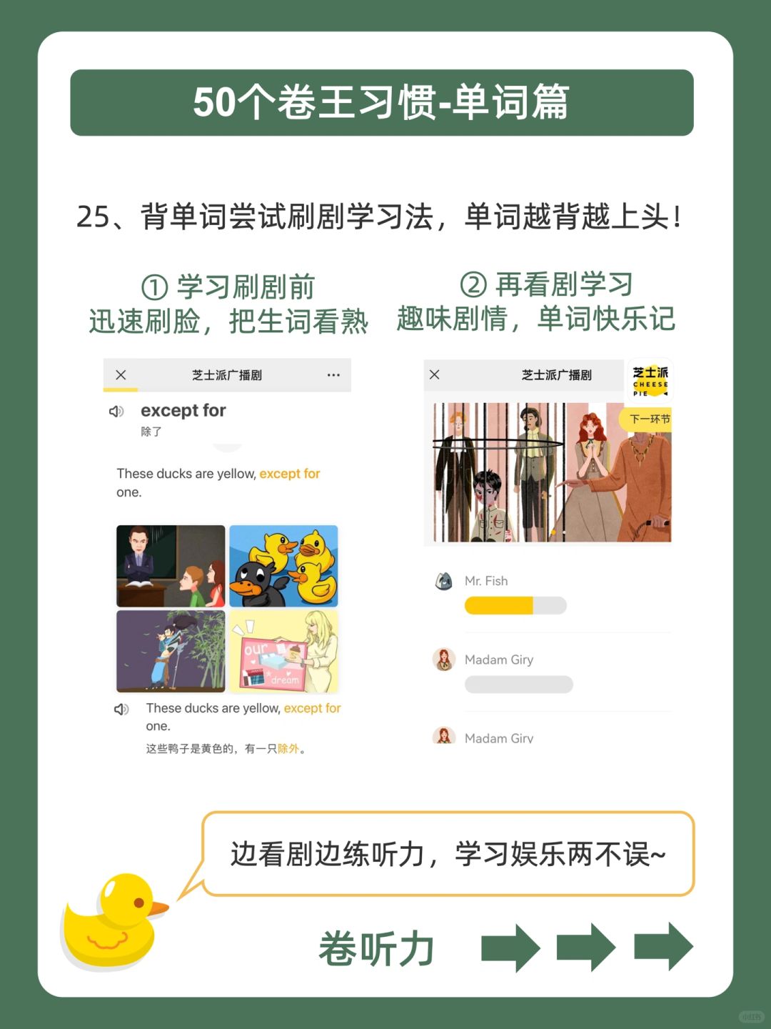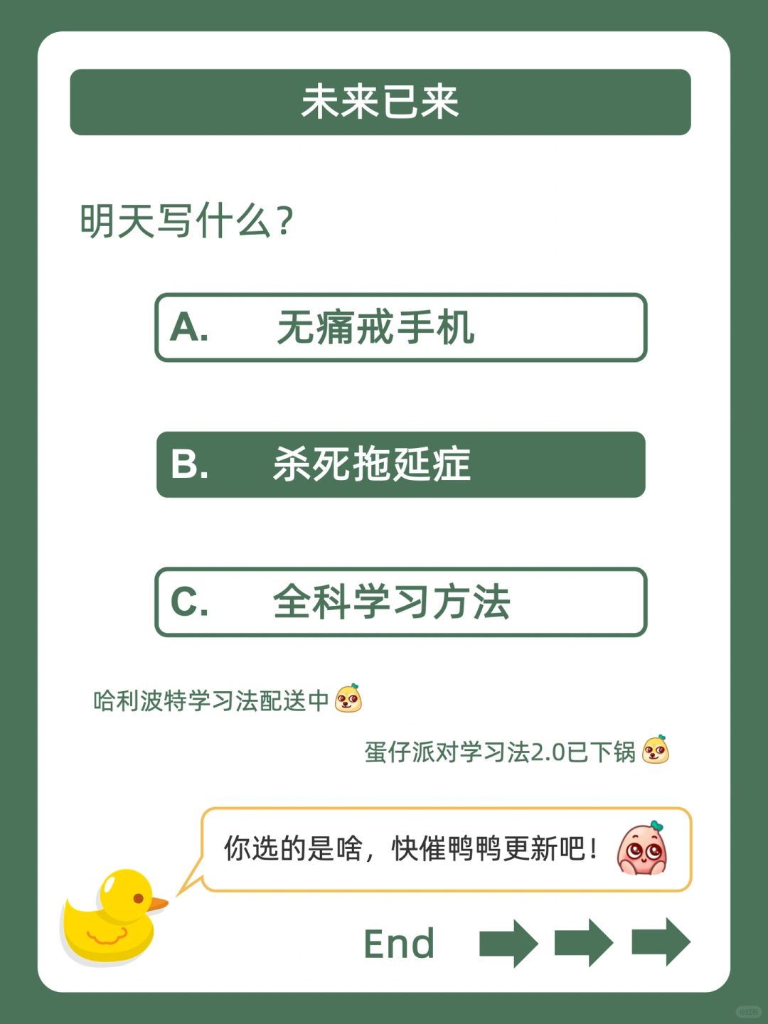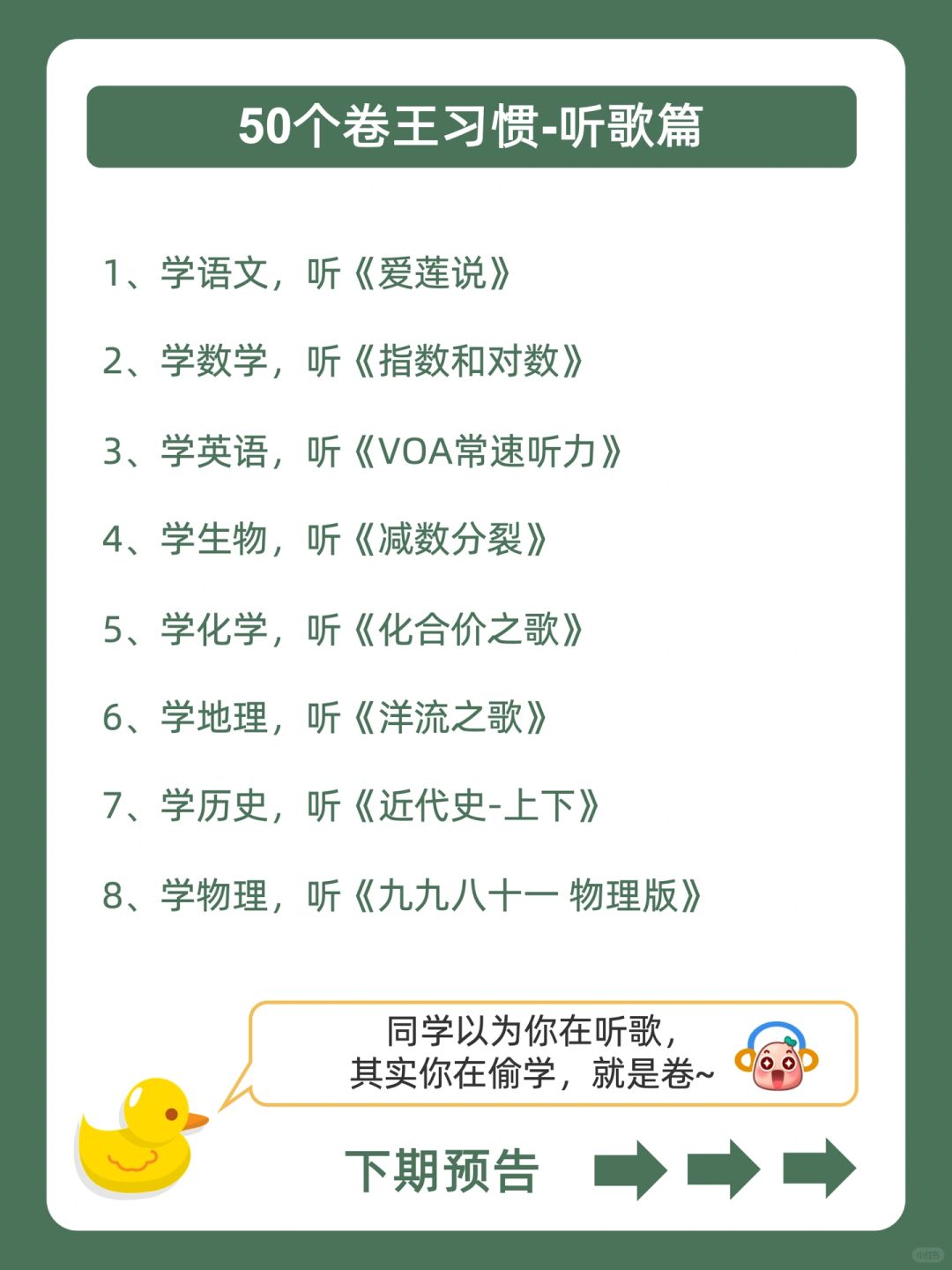 . [赞R]学习摆烂不用怕,鸭鸭带你做学霸! . [向右R]有同学好奇学霸平时都有哪些自律的好习惯[石化R] . [飞吻R]鸭鸭这么宠粉,肯定会全力以赴帮助你们的哇![赞R] . [加油R]今天就来分享,学霸都有的25个日常习惯,都在上面的图,看完就会用!从此偷偷内卷,自律逆袭![赞R] . ️🐣我是鸭鸭,持续更新优质学习方法,陪宝子们快乐学习,驰骋学海!🌊