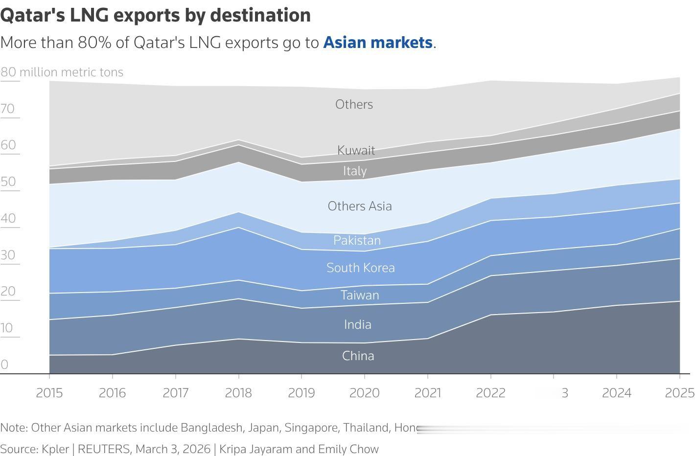 卡塔尔液化天然气出口目的地分布