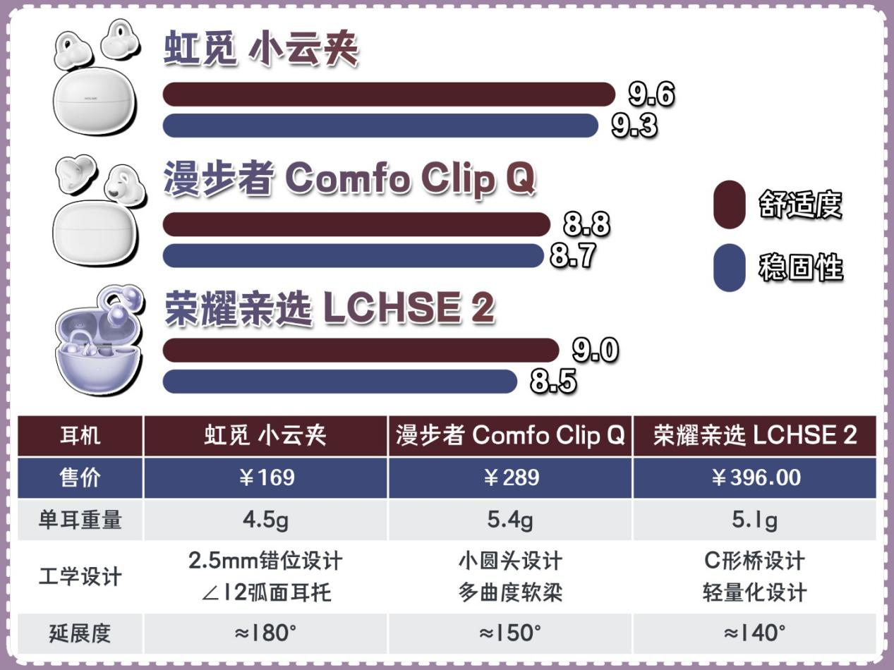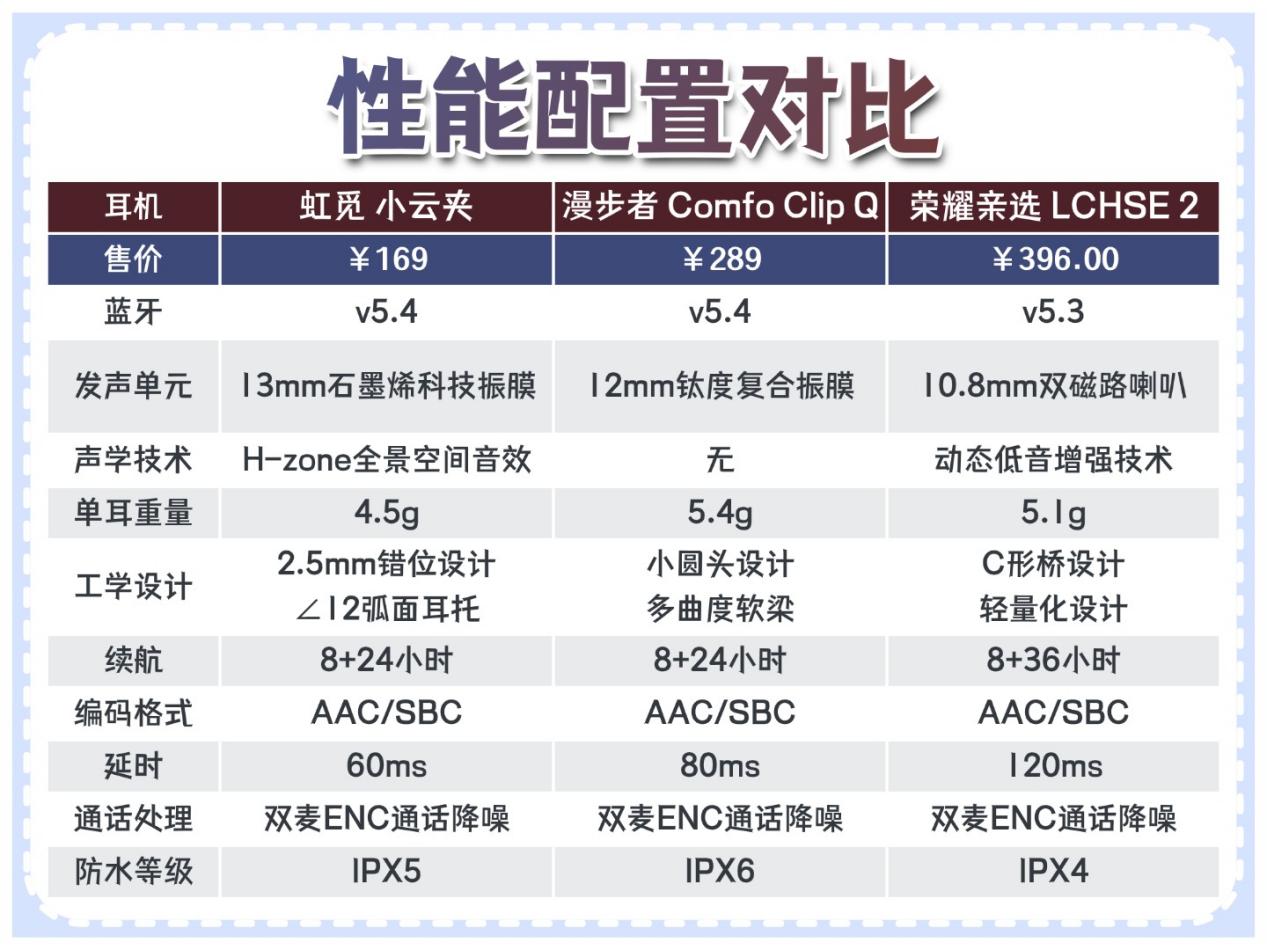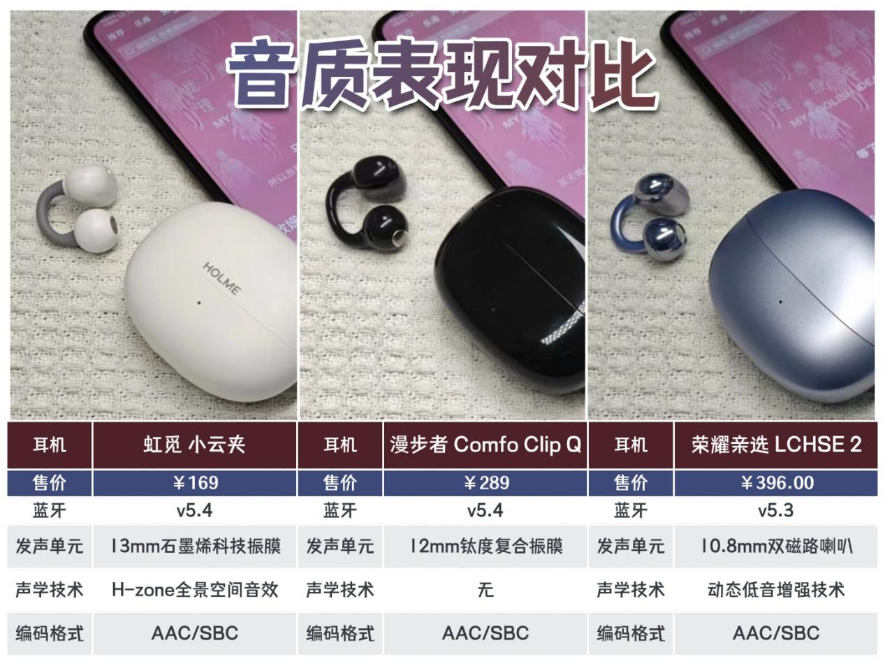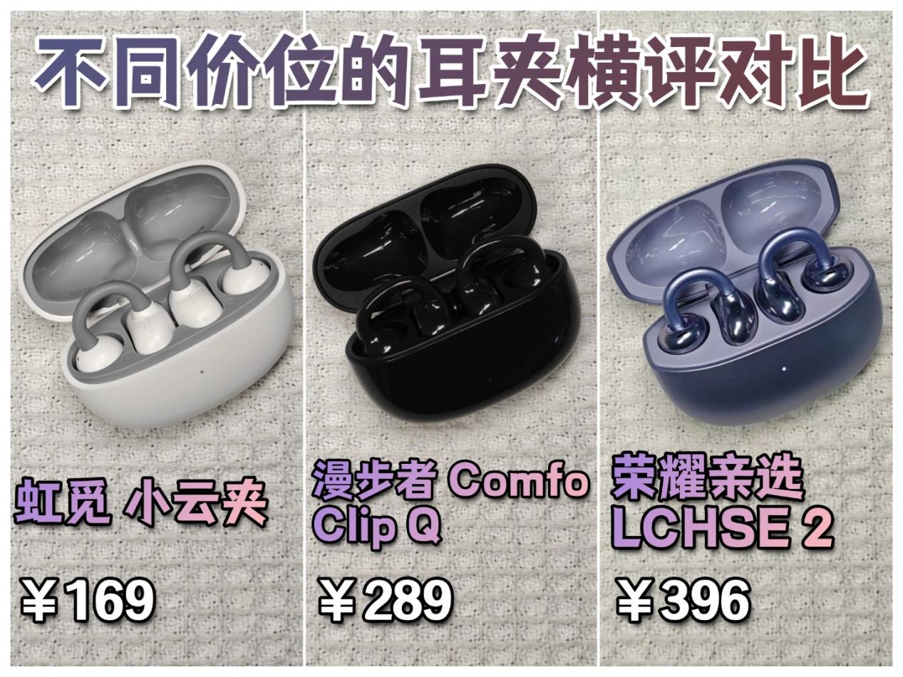 虹觅、漫步者、荣耀亲选三款不同价位的耳夹式耳机横评