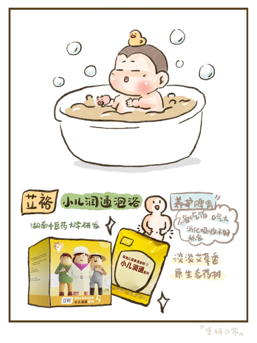 跟朋友抱怨之后,她给我推荐了艾裕的小儿润通泡浴,她说之前她们家姐姐积食也是用的这个,我就用来给蛋堡试试,淡淡的艾草香,里面都是破壁技术处理后的💊材粉末,平时泡泡给宝宝调养一下,给宝宝用的东西当然要做好功课,选择靠谱的了~