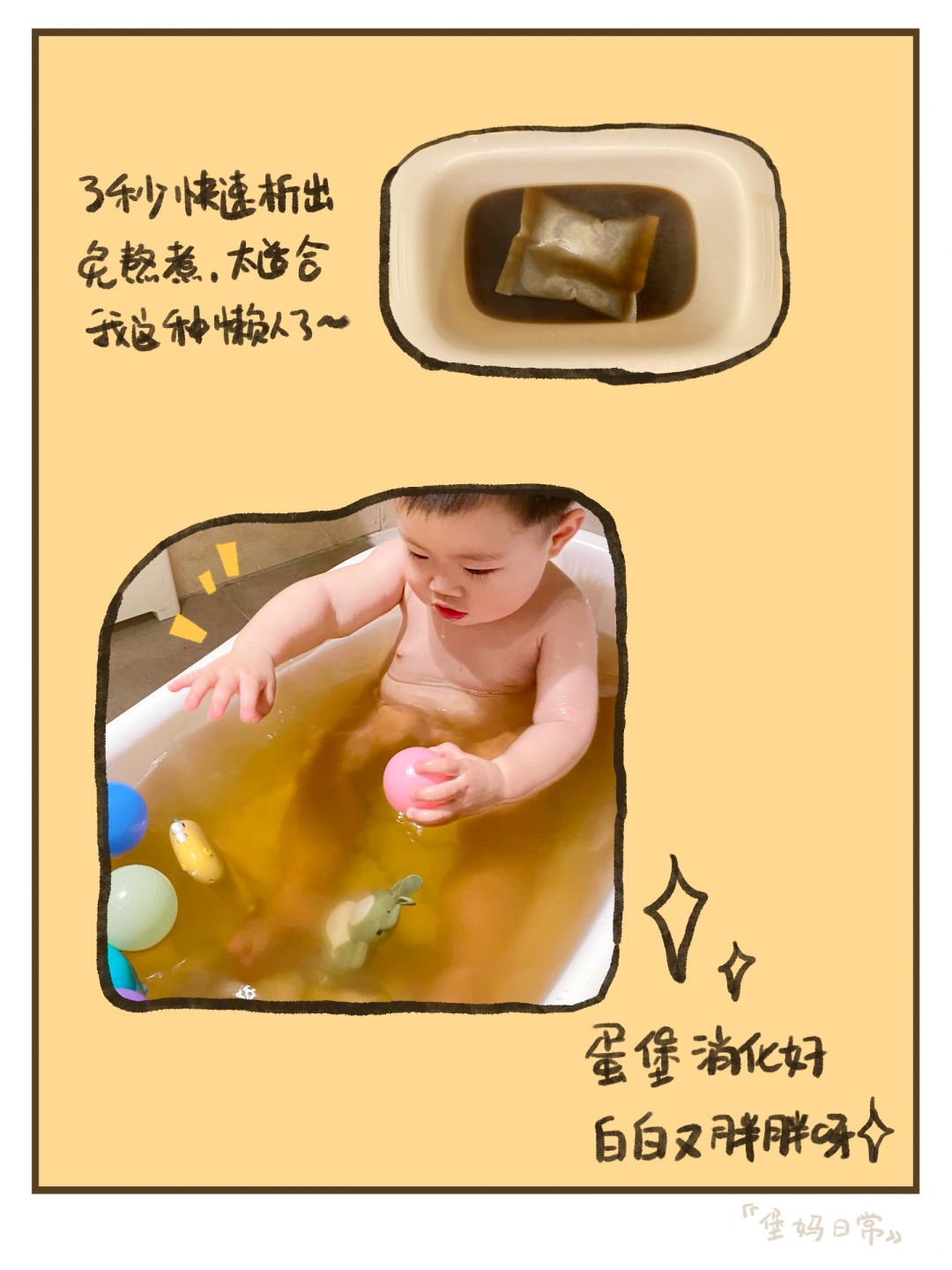 周五带蛋堡去看了一下,果然是积食了,👨🏻⚕️给开了助消化的💊和💊浴,每天要煮半小时左右,滤出💊渣后给宝宝泡澡,见效挺快的,就是对懒人来说有点麻烦[笑哭R]