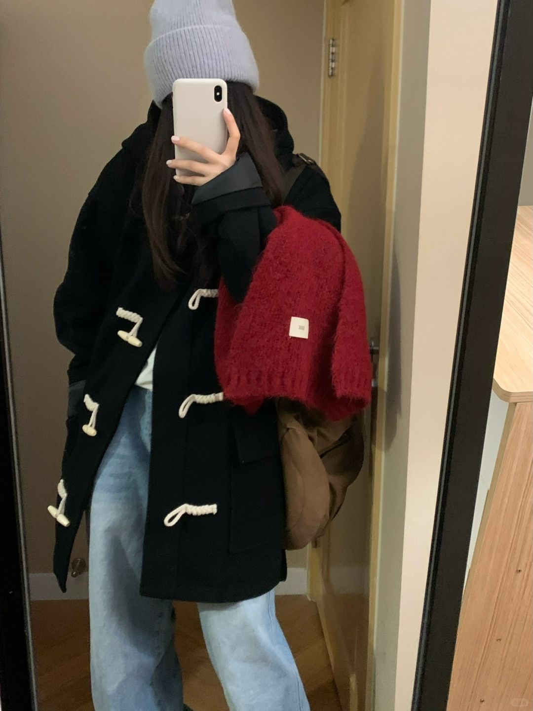 感觉正红不是很好驾驭 酒红就比较日常耐看 搭配灰黑色系都很好看