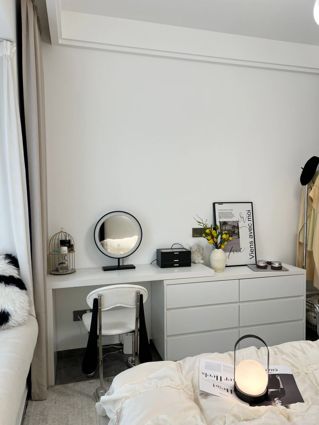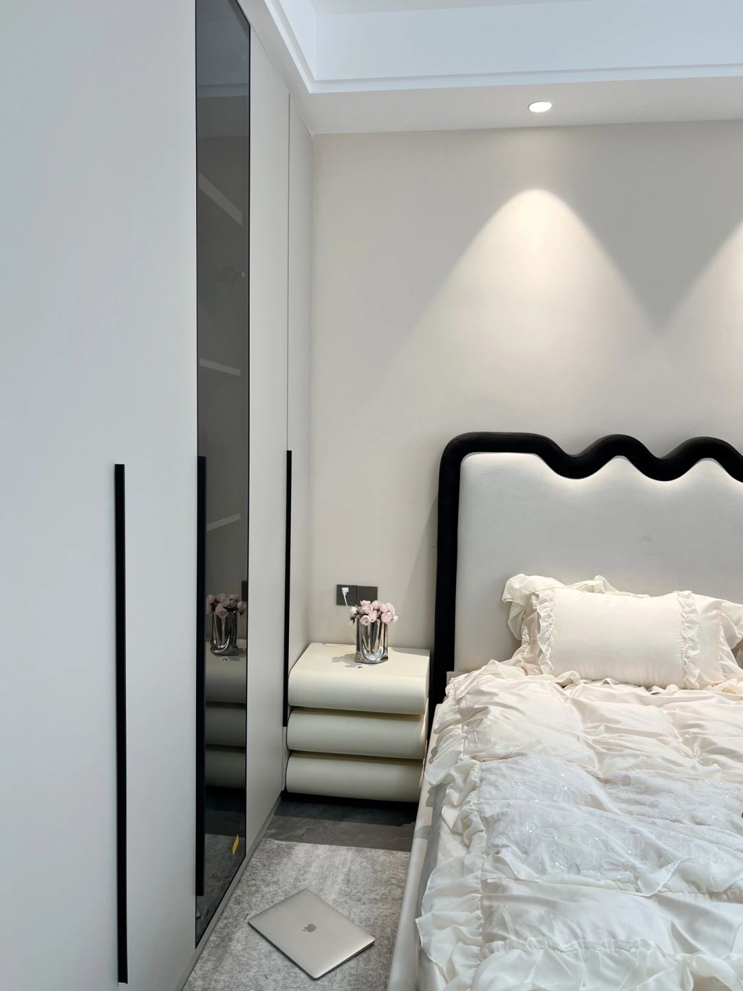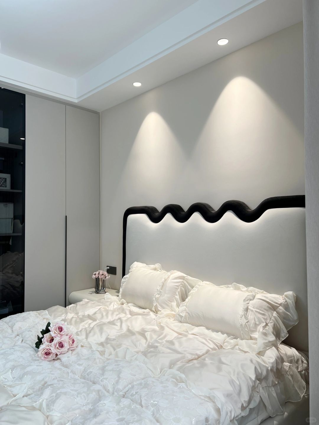 每个女孩都有一个少女梦 婚前住进了儿时梦想的卧室,真的很满足 卧室虽小,但五脏俱全啊~ 背景墙是乳胶漆,搭配双眼皮吊顶 咖色衣柜一门到顶 搭配奶茶色窗帘 一整个温柔风~ 床尾剩余空间1.2m 放了梳妆台斗柜 下班回家在飘窗垫上追追剧 晚上躺床上看看书 刷刷手机 一天的疲惫全没了😌