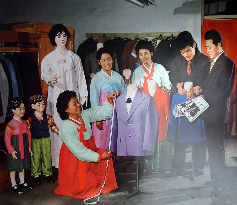1982年,在延边一家制衣店里,裁缝师正在制作西服。