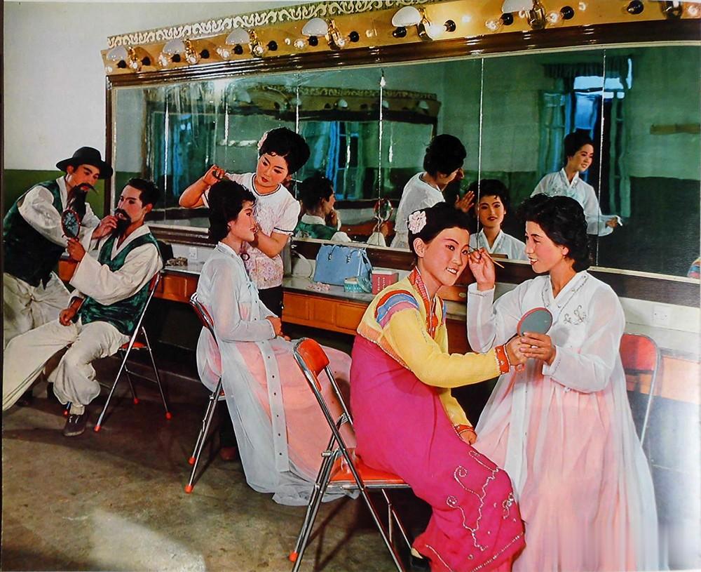 1982年,延边自治州一个剧院的化妆间里,演员们正在化妆,为上台表演做准备。
