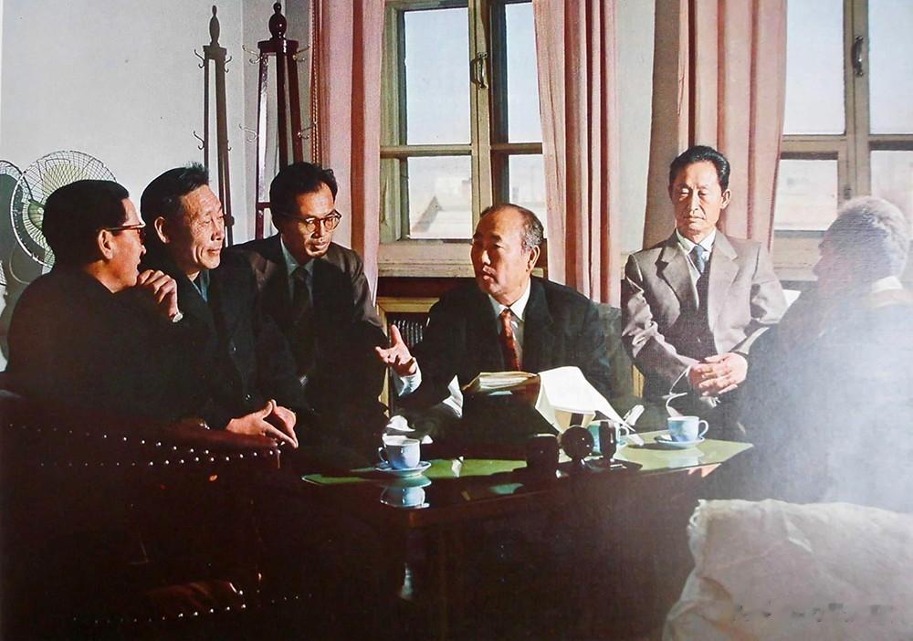 1982年,在一场文艺表演中,延边州演员们正在弹奏伽倻琴,琴声悠扬,舞姿优美。