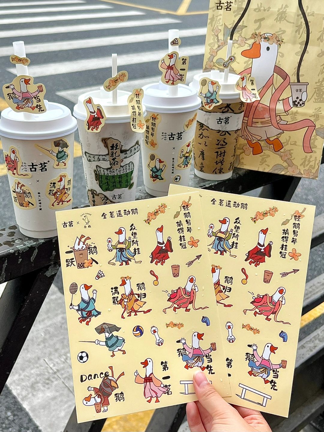 ✅双杯条鹅贴纸➕条鹅限定纸袋